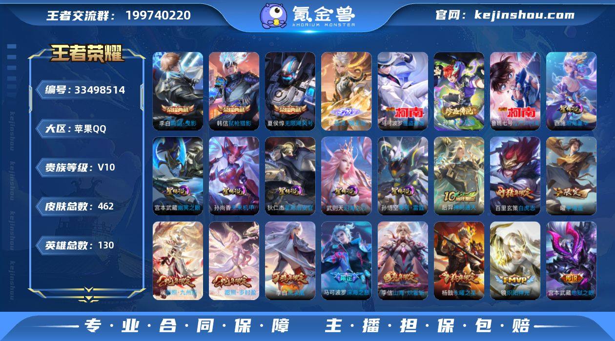 BHC12119,6星元,苹果Q-V10-最强王者段位-130英雄-462皮肤-3典藏皮肤-1典藏英雄-1无双-3珍品传说-49传说-143史诗 【英雄全皮】:白起全皮,马可波罗全皮,刘邦全皮,孙权全皮,橘右京全皮,狂铁全皮,猪八戒全皮,敖隐全皮,空空儿全皮,影全皮 【荣耀典藏】:武则天英雄,夏侯惇无限飓风号,李白鸣剑曳影,韩信弑枪猎影 【无双皮肤】:曜器灵螭龙剑 【珍品传说】:孙策时之奇旅,鲁班七号江户川柯南,马可波罗怪盗基德 【传说皮肤】:后羿神树通天,澜愿照九州拓,虞姬愿照岁时盈,云缨幻光神枪,裴擒虎祥瑞亨通,桑启鸣野蒿,典韦战鼓燎原,艾琳觅芳踪,宫本武藏惊梅引,马可波罗妄想实况,诸葛亮鹤羽星尊,干将莫邪画中仙,伽罗炽翼辉光,孙悟空齐天大圣,李信山海炽霜斩,吕布怒海麟威,李白诗剑行,百里守约碎云,橘右京枫霜尽,孙尚香音你闪耀,马可波罗深海之息,马超无双飞将,孙策挚爱之约,孙尚香异界灵契,赵云淬星耀世,西施游龙清影,曜李逍遥 ,周瑜音你心动,兰陵王默契交锋,诸葛亮时雨天司,铠绛天战甲,镜炽阳神光,虞姬启明星使,孙悟空零号赤焰,关羽武圣,李信一念神魔,刘备时之恋人,貂蝉猫影幻舞,张良黄金白羊座,干将莫邪久胜战神,达摩黄金狮子座...