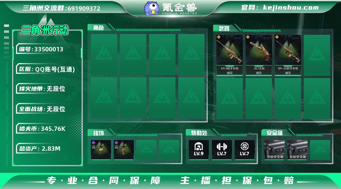 【高资产605M 2刀皮 2红皮 4金皮】 可二次/QQ区【信条】【蚀金玫瑰】【维什戴尔】【总资产:605M+近战信条/4级处刑者+红狼蚀金玫瑰+骇爪维什戴尔+保险箱皮肤0号玩家+非洲之心3+海洋之泪1+133发AWM子弹】【+露娜金牌射手】【乌鲁鲁荒原猎手】【红狼电锯惊魂,女医生不羁人生】/烽火等级:60/纯币:138m收藏室169m/26个金枪皮/各种绝版收藏品/三角券加币部门3333特勤等级(技术中心3级/工作台3级/制药台3级/防具台3级/仓库9级/指挥中心5级/训练中心7级/靶场7级/潜水中心3级/收藏室1级