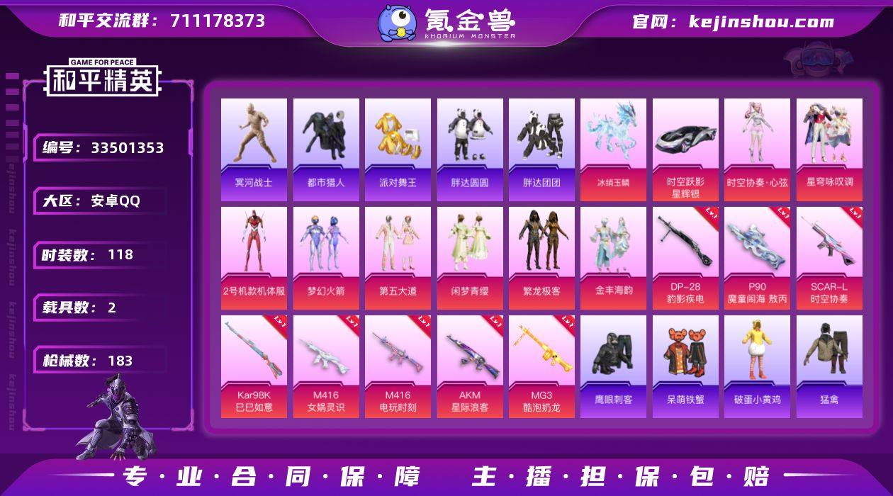10粉装 8粉枪 2载具 4稀有装备 118套装 183枪皮 25热门 时空跃影(星辉银) 冰绡玉鳞 木乃伊 都市猎人 派对舞王(金靴子) 稀有紫装--木乃伊(冥河战士) 稀有紫装-都市猎人 冷酷挑战者(稀有紫装) 2号机款机体服(红螳螂) 梦幻火箭 稀有紫装-派对舞王(金靴子) 缤纷油彩(猪脸妹) 滨海厨神 吉莉礼服 繁龙极客 幻羽潜行 莱茵河畔 白兰地假日 柠萌假日 零款战斗服 龟仙人 无暇誓言 日照花林 空岛之星 贝斯之夜 金戈铁马 惊鸿侠骨 竞技名士 锦衣飞扬 元气发射 龙的传人 快闪甜心 春光漫游 雨林探路者 绯格组合 冰冻风暴 缤纷果语 沙暴袭击者 沙漠兵团 闲梦青缨 第五大道 星穹咏叹调 时空协奏·心弦 金丰海韵 M416-女娲灵识(3级) SCAR-L-时空协奏(3级) S686-生命誓言 GROZA-影袭 G36C-镜域双华 S1897-炫彩节奏 Mini14-耀粉歌者 Kar98K-影袭 DBS-焰鹰斗篷 DP-28-焰鹰斗篷 M416-红色方程式 S12K-破晓战魂 S12K-玩趣呆呆 AUG-甜蜜菠萝 M24-影袭 QBZ-未来歌姬 M24-仲夏莫吉托 Mk47-炫光之旅 SKS-未来歌姬 Mini14-穿刺龙虾 蜜獾-天降萌叽 MG3-惊鸿侠骨 MG3-第五大道 AUG-天降萌叽 AC-VAL-快闪甜心 AKM-2P战斗服款 AMR-乌木金纹 S12K-夜灯 M200-惊鸿侠骨 UZI-啾咪啾咪 M200-仲夏莫吉...