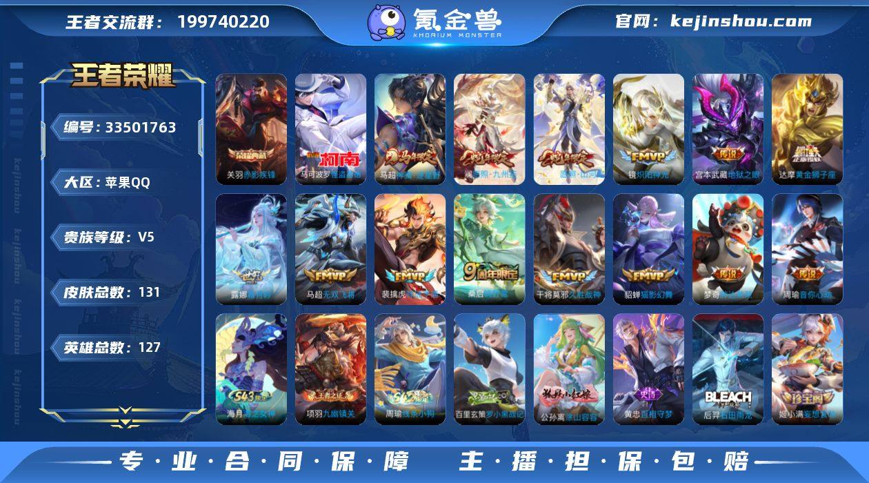 苹果Q-V5-至尊星耀V段位-127英雄-131皮肤-1典藏皮肤-1珍品传说-14传说-35史诗 【英雄全皮】:孙权全皮,敖隐全皮,空空儿全皮 【荣耀典藏】:关羽赤影疾锋 【珍品传说】:马可波罗怪盗基德 【传说皮肤】:马超神骥逐星野,司空震愿照山河定,澜愿照九州拓,裴擒虎祥瑞亨通,桑启鸣野蒿,露娜霜月吟,马超无双飞将,周瑜音你心动,镜炽阳神光,貂蝉猫影幻舞,干将莫邪久胜战神,达摩黄金狮子座,梦奇胖达荣荣,宫本武藏地狱之眼 【限定皮肤】:姜子牙天穹之誓,李白谪仙醉月,狄仁杰阴阳师,赵云皇家上将,元歌无心,狄仁杰魔术师,项羽海滩派对,雅典娜黎明之约,百里玄策原初追逐者,裴擒虎擒涛扼浪,上官婉儿梁祝,鲁班大师探海日志,桑启海盐诗旅,鬼谷子天穹祈灯,姬小满妄想食味,沈梦溪龙舞盛年,刘邦剑破天穹,周瑜熔金海岸 【年限皮肤】:司空震愿照山河定,澜愿照九州拓 【赛季限定】:桑启海盐诗旅,裴擒虎擒涛扼浪,鲁班大师探海日志,鬼谷子天穹祈灯,刘邦剑破天穹,姜子牙天穹之誓,东皇太一噬灭天穹,太乙真人谧流熔炉,钟馗虚灵犬护,甄姬逆浪荇歌,百里玄策原初追逐者,雅典娜黎明之约,牛魔星界战将,项羽九幽镇关 【战令限定】:亚连破空之剑,孙悟空神迹守...