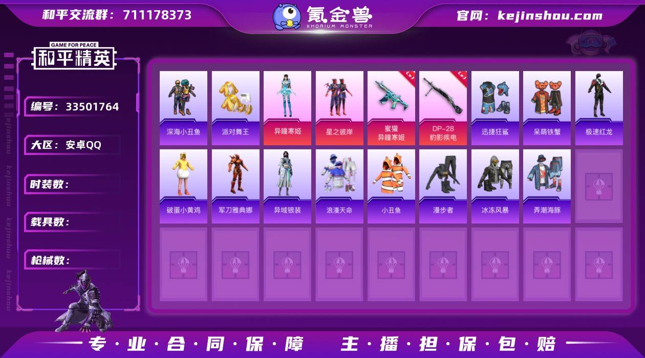 DSH2523【身法号2粉装-4特效枪暗影哥特,派对舞王,浪漫天命,小丑鱼,深海小丑鱼】无二次安卓手Q-2粉装-4特效枪-89套装-94枪皮-4王牌印记-不朽星钻Ⅳ-27689热力值【2粉装】星之彼岸,角色-异瞳寒姬【4特效枪】AA12-G-萌骑幻想[3级],Mk14-福马献瑞[5级],DP-28-豹影疾电[5级],蜜獾-异瞳寒姬[5级]【6稀有】暗影哥特,派对舞王,浪漫天命,小丑鱼,深海小丑鱼,AKM-缤纷海域【8飞行器】沙丘之主天马,登顶巅峰飞行器,鸡智如我飞行器,异域银装飞行器,马上有福飞行器,极意拳锋飞行器,炫彩糖果飞行器,狂鲨锋刃飞行器【1头盔】深海小丑鱼头盔【1背包】深海小丑鱼背包【171其它衣服和枪皮】橘黑制服,凌霄紫焰,角色-超感刻度,冰冻风暴,狙击之神,朱霞炽焰,迅捷狂鲨,青翼流星,玉兔迎春,都市漫游者,SS37特训,街头潮人,迅捷龙虾,天籁歌者,黄色伏地魔,猎鹰,火舞潮人,SS35特训,狂鲨锋刃,SS38特训,角色-枫露凝珀,海岛探路者,弄潮海豚,异域银装,竞技名士,角色-军刀雅典娜,玩偶服-美羊羊,SS36特训,长空猛禽,竞技达人朋克,红色运动,画境星梦,湖蓝色名流,深蓝色名流,呆萌铁蟹,白糯汤圆,SS34特训,绮丽涂鸦,极速红龙,琴音绮想,角色-绯色魅影,白色伏地魔,青年教官,秘语星愿,特训学院,红釉青花,漫步者,魅力单车,阳...