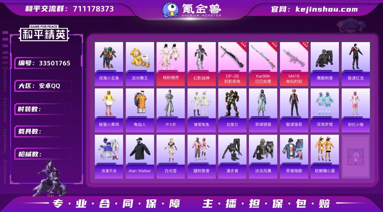 DSH2524【身法号2粉装-7特效枪 派对舞王,深海小丑鱼,TT战队服,浪漫天命,暗影哥特】无二次安卓手Q-2粉装-7特效枪-141套装-168枪皮-4王牌印记-荣耀皇冠Ⅳ-47365热力值【2粉装】幻影战神,桃粉嫣然【7特效枪】UMP45-萌骑冒险[3级],M416-电玩时刻[5级],DP-28-豹影疾电[4级],AKS-74U-森灵之息[5级],ACE32-萌骑漫游[4级],Kar98K-巳巳如意[5级],Mk14-福马献瑞[5级]【6稀有】派对舞王,深海小丑鱼,TT战队服,浪漫天命,暗影哥特,AKM-奇异狩猎者【7飞行器】异域银装飞行器,星空武士飞行器,招财竹蜻蜓飞行器,云朵驼驼飞行器,顶峰精英尾迹,鸿潮鸣舰飞行器,马上有福飞行器【294其它衣服和枪皮】云魄琉璃,霓虹热舞,深蓝色名流,缤纷果语,SS21特训,战地督导,绮丽涂鸦,角色-拉斐尔,燕燕于飞,快乐星愿,战术大师,娇憨猪猪,星途旅人,燕雀桃枝,SS30特训,萝兰蝴蝶,幻世战舞者,SS36特训,SS25特训,破蛋小黄鸡,大橘大利,元素星魂,顶瓜瓜,红色运动,福马献瑞,龙魂突击队,王牌教练,黑色伏地魔,白糯汤圆,超能勇士,糖糖葫芦,SS23特训,SS38特训,SS33特训,SS29特训,青团波波,极地朋克,角色-许七安,潮流炫酷,风暴特警,鱼渊荷华,军械专家,都市漫游者,热情海星,阳光火鸡,黄色伏地魔,野性山猫,破晓战魂,锦衣飞扬,遗迹猎...