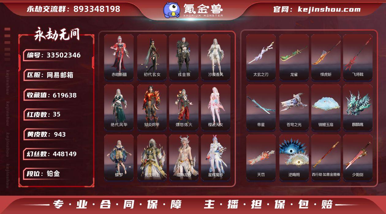 账号内有35个红,以及金箍棒等很多武器皮肤,这个账户巨欧,老常驻4个箱子全红,新箱子有二百多抽,华灯27发双红,天纵宝炉23发双红,扇子,斩马刀,阔刀都是双红,还有很多泳装