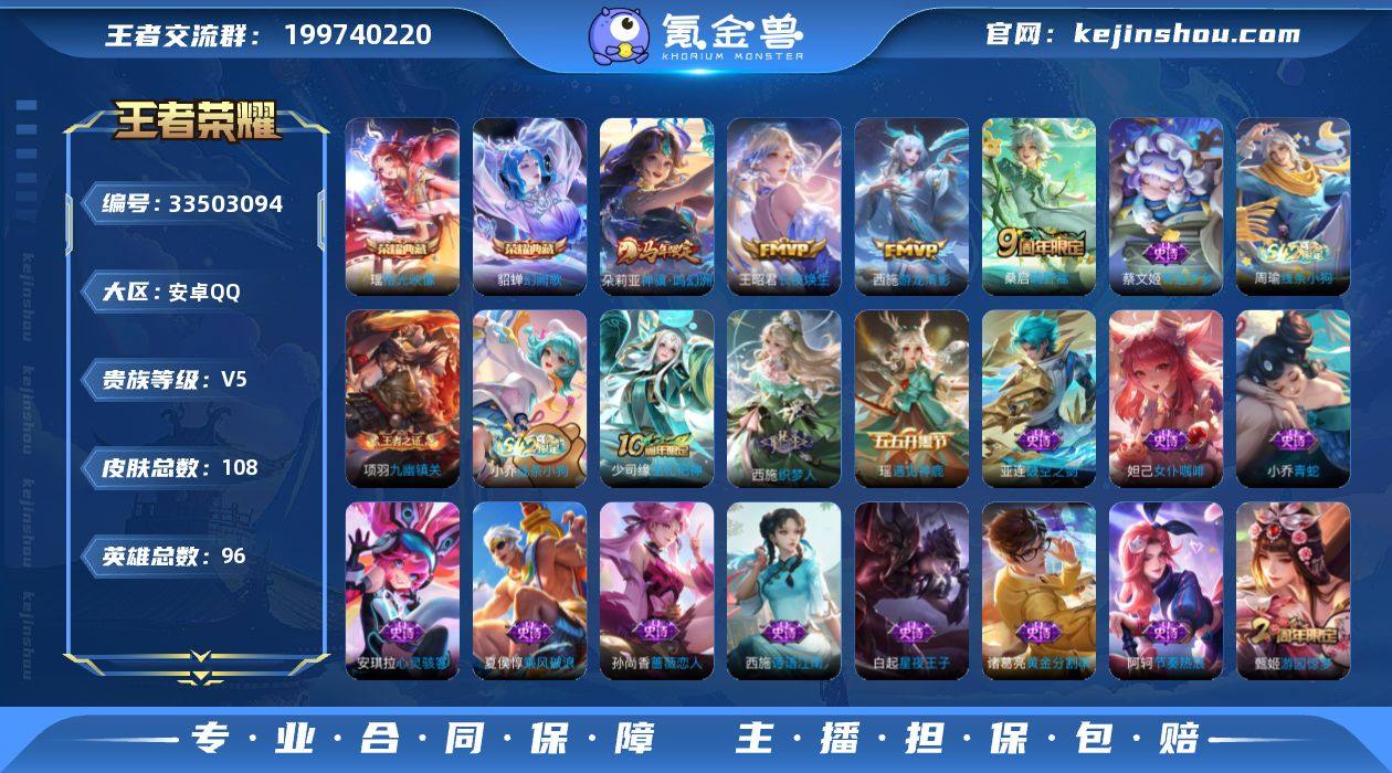 AL701051 【(超级唯美纯女生自玩一手号!) 热门皮肤:拾光映像 幻阙歌 神骥鸣幻洲 长夜焕生 鸣野蒿 游龙清影 蔷薇恋人 破空之剑 奇遇梦乡 九幽镇关 线条小狗 星界战将 巫礼祀神 织梦人 遇见神鹿 游园惊梦 诗语江南 青蛇 白蛇 猫狗日记 节奏热浪 星夜王子 逐浪之夏 舞动绿茵 心灵骇客 冰冠公主 黄金分割率 缤纷独角兽 乘】 皮肤数108 传说皮肤数4 史诗皮肤数32 英雄数96 营地id1769834293 贵族等级【文本】贵族5级 【贵族5级】 荣耀典藏2 内测皮肤1 限定皮肤21 赛季限定9 史诗皮肤33 战令限定5 勇者皮肤50 其他皮肤17 荣耀典藏:瑶拾光映像,貂蝉幻阙歌; 内测皮肤:孙尚香蔷薇恋人; 限定皮肤:朵莉亚神骥鸣幻洲,亚连破空之剑,妲己灵卜魔法,赵云皇家上将,牛魔星界战将,少司缘巫礼祀神,甄姬游园惊梦,孙尚香蔷薇恋人,张良罗小黑战记,西施织梦人,鬼谷子克喵,狄仁杰阴阳师,桑启鸣野蒿,项羽海滩派对,姜子牙天穹之誓,苏烈春野闲踪,钟馗虚灵犬护,李元芳云中旅人,太乙真人谧流熔炉,盘古敬我三分,东皇太一噬灭天穹; 赛季限定:项羽九幽镇关,牛魔星界战将,亚瑟荣光之誓,甄姬逆浪荇歌,姜子牙天穹之誓,钟馗虚灵犬护,李元芳云中旅人,太乙真人谧流熔炉,东皇...
