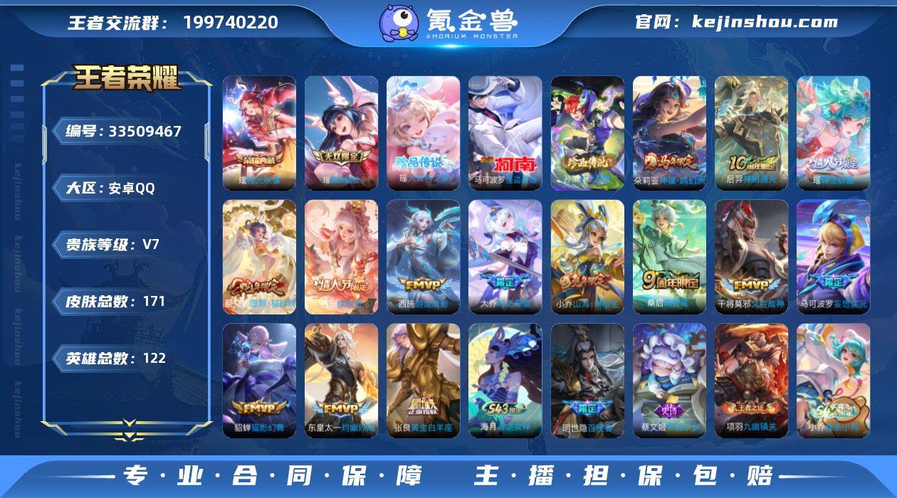 0BFXCO可二次"无双1水晶1珍品传说3极品女号传说14优质限定22 钱包已注销、信用分正常、无设备脸 水晶皮肤:拾光映像, 无双皮肤:真我赫兹(瑶), 珍品传说皮肤:时之奇旅-孙策,怪盗基德,大耳狗之梦, 新传说限定:神骥·鸣幻洲, 传说限定:山海·琳琅生,续相思,妄想实况,愿照·福禄聚,大乔-时之奇旅,时之祈愿-瑶,神树通天, 传说皮肤:游龙清影,灼幽烈阳,猫影幻舞,黄金白羊座,久胜战神,鸣野蒿, 新史诗限定:织梦人,雪豹·霜爪,涂山容容,幻珠鲛人,百晓客, 史诗限定:神威,器灵·浮梦炉,乘龙·聚宝船,神器·万象笔,至美·乘鲤谣,陌上桑,白鹤梁神女,山海·碧波行,涂山红红, 新史诗皮肤:百相守梦-黄忠,奇遇梦乡, 优质史诗皮肤:青蛇,唤灵魅影,银翎春语,诗语江南,白蛇,遇见神鹿, 周年皮肤:遇见飞天,鹤鸣心笺,神树通天, 珍宝阁:蔷薇恋人, 史诗皮肤:功夫厨神,紫霞仙子,冰冠公主,原初追逐者,缤纷独角兽,金属风暴,魅力维加斯,女仆咖啡,摇滚巨星,冰雪圆舞曲,圣诞恋歌,心灵骇客,水果甜心,鹰眼统帅,箭羽风息,绅士熊喵,乱世虎臣,舞动绿茵,猫狗日记-大乔, 贵族7 荣耀典藏1 无双1 珍品传说3 传说皮肤14 史诗皮肤54 皮肤数量171 皮肤价值:137108 天幕1 英雄122 永恒钻石I 总场次4405