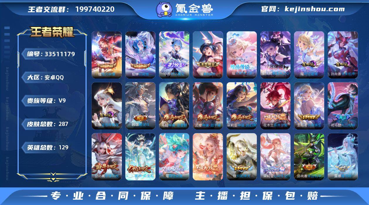 全皮瑶 安卓Q-V9-永恒钻石III段位-129英雄-287皮肤-2典藏皮肤-2无双-2珍品传说-25传说-79史诗 【英雄全皮】:孙权全皮,朵莉亚全皮,瑶全皮,敖隐全皮,空空儿全皮,影全皮,海诺全皮 【荣耀典藏】:貂蝉幻阙歌,瑶拾光映像 【无双皮肤】:小乔时之魔女,瑶真我赫兹 【珍品传说】:安琪拉酷洛米之心,瑶大耳狗之梦 【传说皮肤】:韩信踏浪归,云缨神骥越千峰,朵莉亚神骥鸣幻洲,马超神骥逐星野,花木兰异界灵契,王昭君长夜焕生,司马懿九山相柳,西施续相思,妲己愿照众生和,朵莉亚心动手记,露娜霜月吟,孙膑小动物乐团,甄姬至美化雀舞,小乔山海琳琅生,蔡文姬花朝如约,瑶时之祈愿,貂蝉遇见胡旋,西施游龙清影,公孙离祈雪灵祝,镜炽阳神光,虞姬启明星使,张良黄金白羊座,虞姬云霓雀翎,貂蝉仲夏夜之梦,孙尚香末日机甲 【限定皮肤】:蔡文姬夏日便利店,大乔绒语心约,虞姬夏日便利店,姜子牙天穹之誓,狄仁杰阴阳师,小乔山海琳琅生,赵云皇家上将,妲己热情桑巴,妲己时之彼端,妲己时之奇旅,孙尚香蔷薇恋人,鲁班七号狮舞东方,庄周高山流水,钟无艳超时空战士,芈月白晶晶,元歌无心,甄姬女儿国国王,甄姬落雪兰心,甄姬至美化雀舞,狄仁杰魔术师,狄仁杰万...