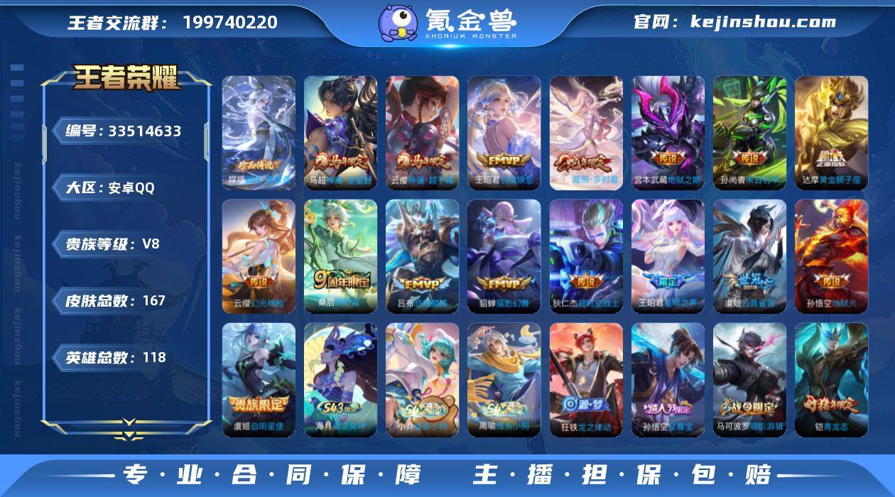 安卓Q-V8-永恒钻石III段位-118英雄-167皮肤-1珍品传说-16传说-44史诗 【英雄全皮】:孙权全皮,影全皮 【珍品传说】:嫦娥器灵落星盏 【传说皮肤】:云缨神骥越千峰,马超神骥逐星野,王昭君长夜焕生,虞姬愿照岁时盈,云缨幻光神枪,桑启鸣野蒿,吕布怒海麟威,王昭君星穹之声,虞姬启明星使,貂蝉猫影幻舞,虞姬云霓雀翎,达摩黄金狮子座,孙尚香末日机甲,宫本武藏地狱之眼,孙悟空地狱火,狄仁杰超时空战士 【限定皮肤】:狄仁杰阴阳师,赵云皇家上将,赵云龙胆,阿轲迷踪丽影,钟无艳王者之锤,元歌云间偶戏,元歌无心,马可波罗暗影游猎,狄仁杰魔术师,狄仁杰万华元夜,项羽海滩派对,老夫子醍醐杖,程咬金演武夺筹,刘邦夺宝奇兵,王昭君星穹之声,亚瑟潮玩骑士王,孙悟空至尊宝,孙悟空大圣娶亲,虞姬启明星使,钟馗驱傩正仪,雅典娜单词大作战,蔡文姬繁星吟游,鬼谷子原初探秘者,铠青龙志,弈星混沌棋,明世隐疑决卦,裴擒虎李小龙,云中君纤云弄巧,猪八戒西部大镖客,蒙犽狂想玩偶喵,妲己灵卜魔法 【年限皮肤】:铠青龙志,虞姬愿照岁时盈 【赛季限定】:弈星混沌棋,明世隐疑决卦,老夫子醍醐杖,鬼谷子原初探秘者,狄仁杰万华元夜,程咬金演武夺筹,钟馗驱傩...