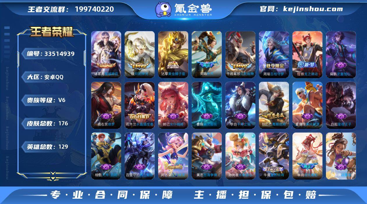 V6 1典藏 8传说 129英雄 176皮肤 可二次 可修改实名 男号 【英雄全皮】敖隐全皮,孙权全皮,大禹全皮 【稀有英雄】敖隐(小龙人),大司命,嬴政(始皇帝),韩信(韩跳跳),夏洛特(夏师傅),艾琳,橘右京(橘子),娜可露露(鸟人),不知火舞,赵云,金蝉(唐僧),戈娅 【荣耀水晶】星域神启(倪克斯贼亮) 【传说皮】神骥·镇沧海,黄金狮子座,末日机甲-孙尚香(绿蚂蚱),久胜战神,炽阳神光 【珍宝阁皮】蔷薇恋人,玩趣恶龙 【赛季/战令皮】噬灭天穹(s37),古海寻踪(s33),地狱燃心,剑破天穹(s35),天穹祈灯(s34),天穹之誓(s36),蔡文姬夏日便利店,虞姬夏日便利店,混沌棋(s18),疑决卦(s19),醍醐杖(s20),原初探秘者(s21),万华元夜(s22),赤莲之焰,云间偶戏 【史诗皮】海之女神,茶境仙,星界战将,战舞者,蒙犽顽岩魄,怒海争锋,芈月浮光幕影,光弋星穹,天穹守望者,线条小狗-周瑜,九幽镇关,线条小狗-小乔,灵蛊蚀心,万灵启世,龙之律动,百相守梦-黄忠,百相守梦-周瑜,织梦人,紫霞仙子,特工魅影,千年之狐,江河有灵,蒙恬荣光圣徽,偶像歌手,乱世虎臣,节奏热浪,修罗,女仆咖啡,摇滚巨星,水果甜心,天才门将,星夜王子,德古拉伯爵,幽灵船长,鬼剑武藏,天秀·启明,舞动绿茵,乘风破浪,水晶猎龙者,箭羽风息,金属风暴,鹰眼统帅,魅力维...