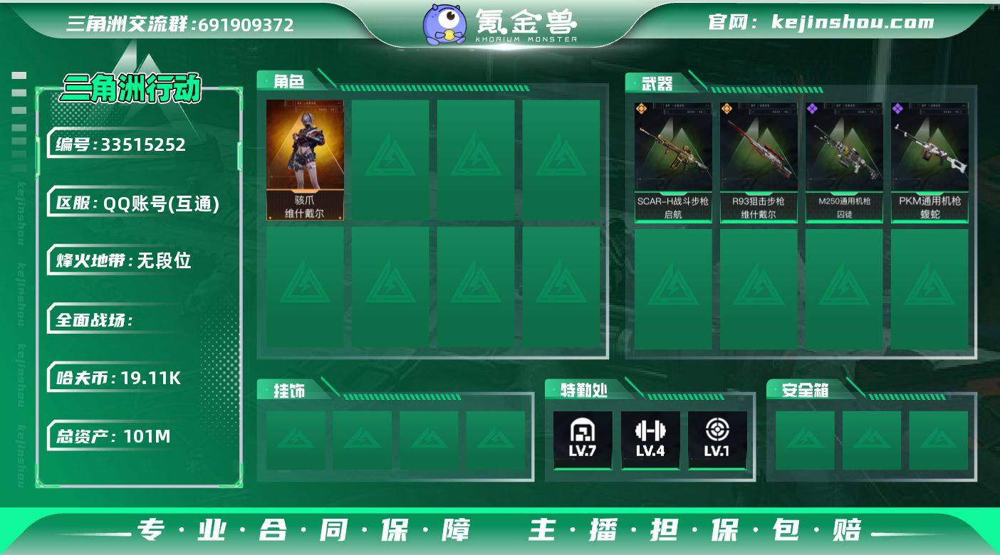 MSJ3722【101M资产 红皮骇爪-维什戴尔】三端互通-总价值101.8M-哈夫币19,118.87-烽火地带等级48-烽火地带段位黄金【干员皮肤】骇爪-维什戴尔【近战武器】黑鹰【枪皮】SG552突击步枪-巨兽 M4A1突击步枪-粉色涂装 M4A1突击步枪-海色 AKM突击步枪-肃杀 AKM突击步枪-锦绣 QBZ95-1突击步枪-高雅黑 QBZ95-1突击步枪-海浪 QBZ95-1突击步枪-海色 QBZ95-1突击步枪-2026 AKS-74U突击步枪-冰天雪地 K416突击步枪-几何迷彩 K416突击步枪-高雅黑 K416突击步枪-酷炫狂拽 K416突击步枪-冬日风情 K416突击步枪-缄默情歌 K416突击步枪-行动记录 M16A4突击步枪-高雅黑 AUG突击步枪-浅蓝涂装 M7战斗步枪-红色涂装 M7战斗步枪-黑巧甜心 M7战斗步枪-前沿科技 M7战斗步枪-捣蛋鬼 SG552突击步枪-海浪 SG552突击步枪-狂欢 SG552突击步枪-2026 SCAR-H战斗步枪-数码迷彩 SCAR-H战斗步枪-荣耀列队 SCAR-H战斗步枪-启航 G3战斗步枪-高雅黑 G3战斗步枪-哈夫克警备 PTR-32突击步枪-黄蜂 CAR-15突击步枪-狂欢 AS Val突击步枪-黑巧甜心 腾龙突击步枪-马年祥瑞 K437突击步枪-锦绣 KC17突击步枪-缄默情歌 MP5冲锋枪-海色 MP5冲锋枪-黄蜂 MP5冲锋枪-哈夫克卫队 P90冲锋枪-黑巧甜心 Vector冲锋枪-几何迷彩 Vector冲...