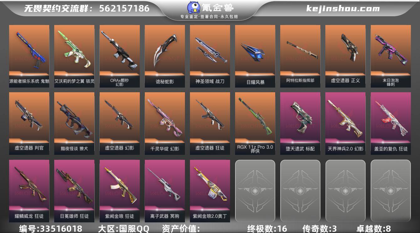 【qyz9946】可二次 玩够能回血 3刀4狂徒 qyz9946 【近战武器】:近战武器-穿花蝴蝶,近战武器-紫金爪刀,近战武器-源始幻刃,近战武器-天御刀,近战武器-诡秘蛇影 军刀,近战武器-神圣领域 战刀,近战武器-日耀风暴 遗器,近战武器-阿特拉斯指挥部 甩棍 【狂徒】:狂徒-虚空遗器,狂徒-盖亚的复仇,狂徒-日冕雄师,狂徒-耀鳞威龙,狂徒-紫阙金琅,狂徒-诡秘蛇影 【幻影】:幻影-千灵华绽,幻影-虚空遗器,幻影-ORA x 颗秒,幻影-天界神兵//2.0,幻影-神圣领域,幻影-末日之翼 【戍卫】:戍卫-月球哨兵,戍卫-折光棱晶 【獠犬】:獠犬-黯夜怪谈,獠犬-神圣领域 【冥驹】:冥驹-离子武器,冥驹-星云暗涌 【飞将】:飞将-末日之翼 【莽侠】:莽侠-RGX 11z Pro//3.0,莽侠-诡秘蛇影,莽侠-月球哨兵 【战神】:战神-神圣领域 【奥丁】:奥丁-紫阙金琅//2.0,奥丁-末日之翼 【判官】:判官-虚空遗器,判官-诡秘蛇影 【雄鹿】:雄鹿-月球哨兵 【骇灵】:骇灵-艾沃莉的梦之翼,骇灵-无限竞技,骇灵-星云暗涌 【蜂刺】:蜂刺-末日泡泡,蜂刺-星云暗涌,蜂刺-折光棱晶 【标配】:标配-堕天遗武,标配-决意,标配-折光棱晶 【正义】:正义-虚空遗器,正义-纳米打击,正义-月球哨兵 【...