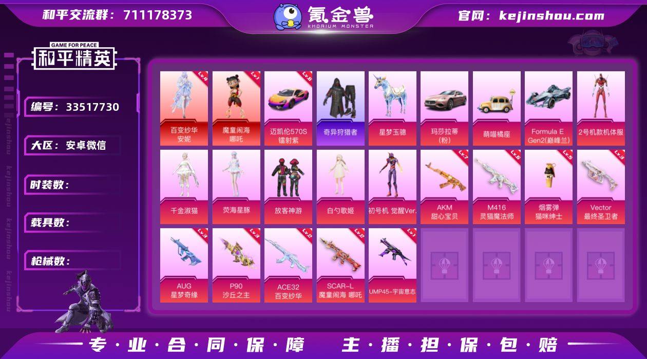 编号63493 安V售后,地铁满天赋,战神框,24印记,4级安妮,哪咤,木乃伊,天网,觉醒,螳螂,小丑,追光,矿咩哈李,白勺,放客,都市,金鞋子,飞龙,满级迈凯伦,星梦玉骢,灵猫魔法师,最终圣卫者,星梦奇缘,沙丘之主,百变纱华,魔童闹海,宇宙意志,甜心AK,27特5满7计数8淘汰,34粉2红,5载具
