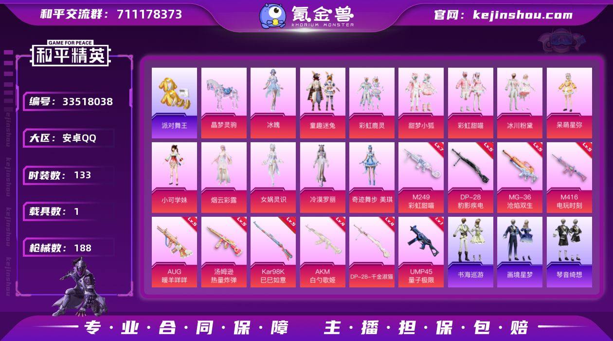 11317精品妹妹号 14粉15特1载具 派对舞王 红熊茄茄 软软马卡龙 甜梦小狐 童趣迷兔 小舞 粉马 安卓 手Q-14粉装-15特效枪-1载具-4粉色飞行器-62715热力值-5王牌印记-133套装-188枪皮 【热门品类】:粉装-童趣迷兔,套装-浪漫天命,套装-派对舞王,套装-软软马卡龙,套装-红熊茄茄 【粉色套装】:粉装-童趣迷兔,粉装-彩虹鹿灵,粉装-甜梦小狐,粉装-彩虹甜喵,粉装-冰川粉黛,角色-呆萌星弥,角色-小可学妹,角色-烟云彩露,角色-女娲灵识,角色-冷漠罗丽,角色-奇迹舞步 美琪,角色-冰魄,人物-小舞·灵珑,角色-鸢尾珑雾 【粉色枪皮等级】:AKM-白勺歌姬(四级),M416-电玩时刻(五级),AUG-暖羊咩咩(五级),UMP45-量子极限(一级),UMP45-萌骑冒险(五级),汤姆逊-热量炸弹(五级),AKS-74U-森灵之息(五级),Kar98K-巳巳如意(五级),Mk14-福马献瑞(五级),M249-彩虹甜喵(七级),DP-28-千金淑猫(四级),DP-28-豹影疾电(五级),DP-28-鸢尾珑雾(三级),MG-36-沧焰双生(五级) 【粉色载具】:晶梦灵驹 【粉色枪皮】:AKM-白勺歌姬,M416-电玩时刻,AUG-暖羊咩咩,ACE32-百变纱华,UMP45-量子极限,UMP45-萌骑冒险,汤姆逊-热量炸弹,AKS-74U-森灵之息,Kar98K-巳巳如意,Mk14-福马献瑞,...