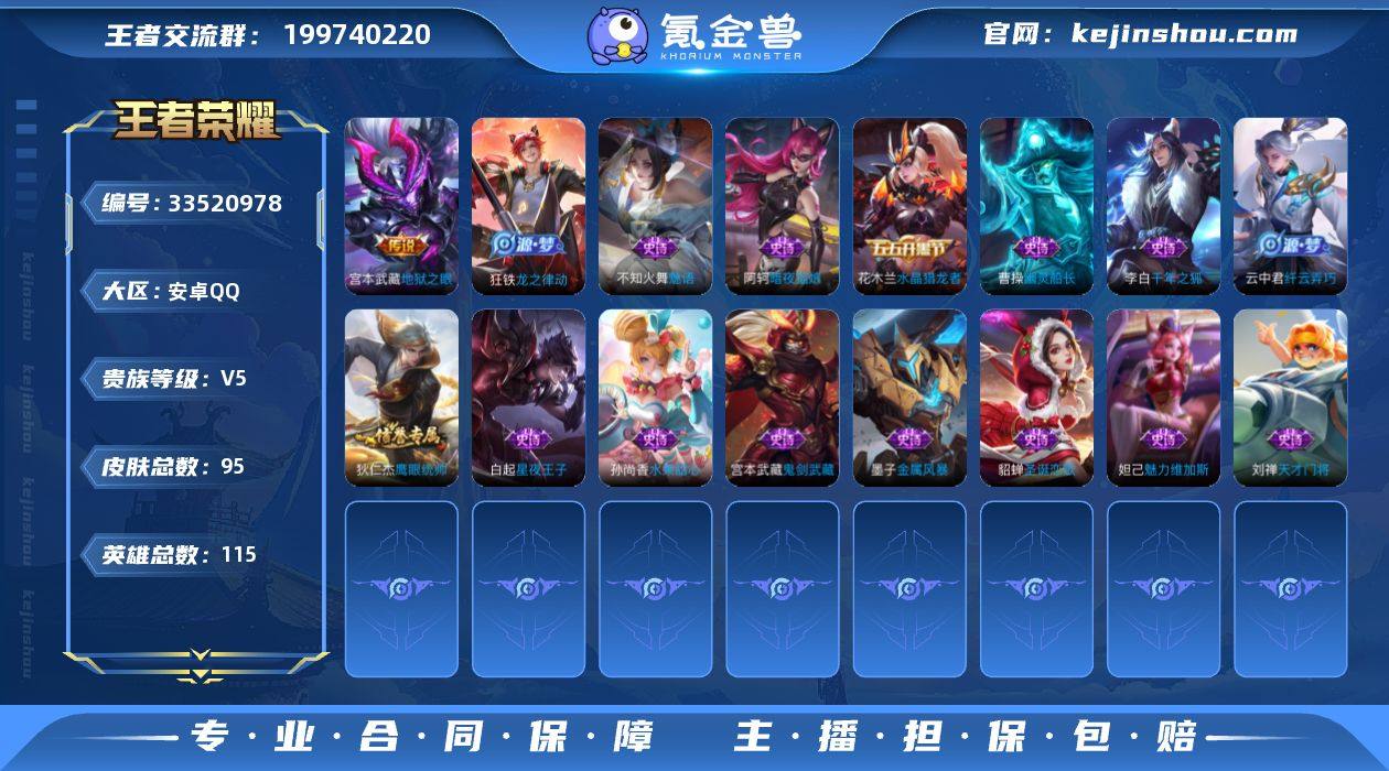 V5 3传说 115英雄 95皮肤 可二次 可修改实名 男号