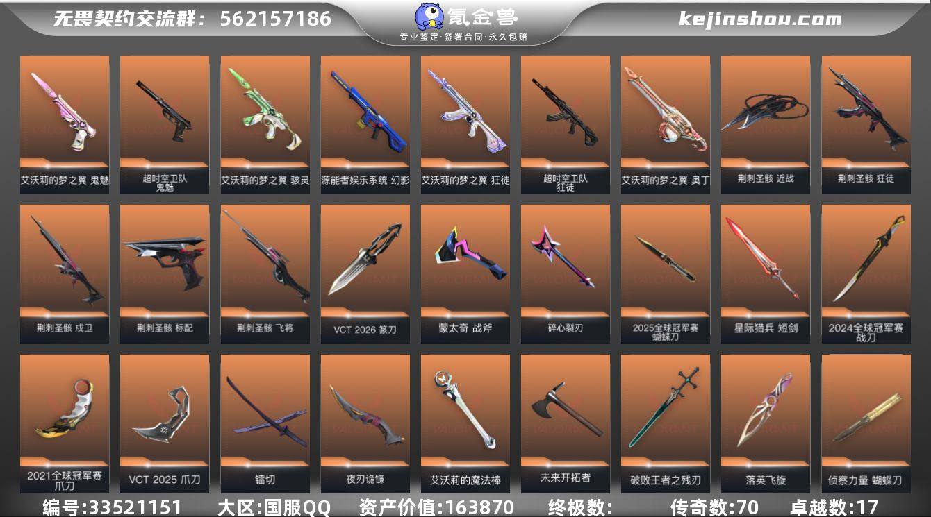 可小刀,16w价值,21 24 25套vct篆刀爪刀,还捆一个lol号,有圣堂皮