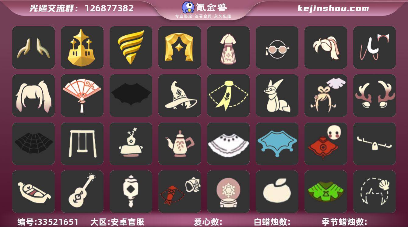 账号类型: 邮箱账号 季节已毕业: 梦想季,潜海季,表演季,织光季 完成地图: 晨岛,云野,雨林,霞谷,暮土,禁阁,全图毕业 珍稀物品: 白枭 礼包: 蝙蝠套,巫师,围巾,小狐狸,绊爱,鹿角,蜘蛛斗,秋千,茶桌,茶壶,白绒金,瑞雪,福娃,跷跷板,小船,吉他,灯笼,鲤鱼套,雪花球,橘子,粽叶,贝壳,红伞,兔子,南瓜,枯角,鲤鱼,tgc,水母,创始人,献瑞折扇礼包,渐变双马尾发型礼包,皮皮猫套装礼包,琅骏启岁长裙礼包,幸运亨通眼镜礼包,宝骏丹心马尾礼包 裤子: 武士裤,背带裤,白棉裤,搓澡巾 面饰: 红耳机 项链: 围巾 发型: 蝴蝶结,正太,樱花,公主头,白枭 头饰: 花环 斗篷: 白金,红金,玫瑰褶边斗篷 配饰: 高音钢琴 亮点: 有织光季季卡