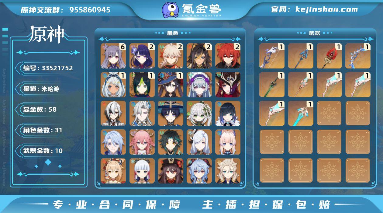 原神官服60级毕业号 | 【刻晴6命】30+金多高命人权卡 | 老号高探索度全满命四星 一手自玩官服原神号,停玩2年,无科技无封禁无违规,可换绑手机+邮箱,实名家人信息不可改,自用号绝对无找回风险,放心入! 【核心角色&命座(全体系毕业)】 - 高命人权卡:刻晴6命、雷电将军2命、枫原万叶2命、那维莱特1命、迪希雅2命 - 全五星人权卡齐全:钟离、胡桃、夜兰、纳西妲、申鹤、神里绫华/绫人、流浪者、恰斯卡、玛拉妮、宵宫、温迪、魈、可莉、达达利亚等30+五星 - 全四星满命:班尼特6、行秋6、香菱6、久岐忍6、砂糖6、迪奥娜6等所有辅助全满命,所有主流配队(雷国、永冻、胡行钟夜、万达、绽放)直接成型,零成本上手 【养成&探索拉满,买家零开荒】 - 冒险等级60级满阶,世界等级9级,活跃天数1194天,停玩2年老号,底子超稳 - 老号高探索度!风/岩/雷/草/水/火神瞳全收集,地图宝箱大量已清,仅后期地图未完全探索,探索度拉满 - 满好感角色652个,成就652个,洞天宝钱、树脂全满,摩拉2400W+,材料海量,新角色直接拉满 - 圣遗物多套毕业,核心角色全90级,深渊满星无压力,上手直