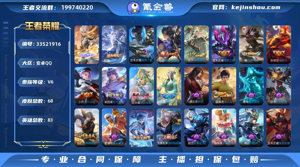 【1无双2珍品1星元6传说螭龙剑落星盏 秒换绑不用等】安卓Q-83英雄【1无双】器灵·螭龙剑【1星元】幽冥之眼【2珍品传说】沧流箭 器灵·落星盏【6传说】神树通天 神骥·逐星野 云鹰飞将 地狱之眼 地狱火 音你心动【23史诗】光弋星穹 逆浪荇歌 万物之道 器灵·浮梦炉 涂山容容 幽灵船长 魅力维加斯 魔术师 鹰眼统帅 鬼剑武藏 白龙吟 修罗 绅士熊喵 圣诞狂欢 末日机甲 李小龙 水果甜心 乘风破浪 摇滚巨星 乱世虎臣 皇家上将 未来纪元 原初追逐者【29勇者】剑破天穹 线条小狗 溯影追猎 鹤鸣心笺 径山谋武 往忆晖光 虚灵犬护 荣光之誓 罗小黑战记 布丁狗之约 班班快跑 归虚梦演 逆浪荇歌 熔金海岸 万象初新 街头霸王 教廷特使 阿尔法小队 兔女郎 敏锐之力 纽约教父 天使之翼 幻想奇妙夜 海滩派对 死亡骑士 忍·炎影 掌控之力 星际陆战队 阴阳师 营地ID:1602092364