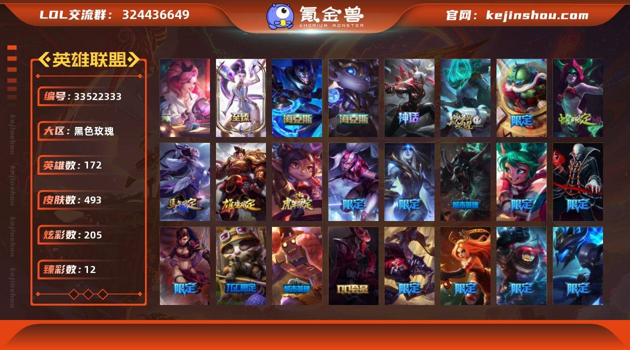 t39620 皇冠账号【黑色玫瑰】493皮肤 205炫彩 12臻彩 8神话/70限定/44传说/172英雄 账号等级:929 【重要头像】心型钥匙 觅心游侠卢锡安 萨勒芬妮超级巨星 萨勒芬妮独立音乐人 【重要皮肤】KDA二代卡莎至臻 殿堂传奇薇恩 海克斯科技波比 海克斯科技嘉文四世 水晶圣骑塔莉垭 胜利行刑官德莱文 胜利女神娑娜 胜利女神希维尔 胜利之王泰达米尔 星之守护者伊泽瑞尔 神凰行者烈羽焰凰霞 虎头虎脑崔丝塔娜 碧玉之牙卡西奥佩娅 广寒仙子嫦娥 张辽文远 胜利之树茂凯 胜利女神奥莉安娜 胜利枪神格雷福斯 胜利枪神卢锡安 胜利之剑亚托克斯 甜心宝贝安妮 觅心之翼奎因 幽梦玫瑰辛德拉 夺命美人卡特琳娜 平安夜女神娑娜 泳池派对凯特琳 泳池派对李青 泳池派对雷克顿 御星魔矢艾希 DRX艾希 EDG佛耶戈 SKTT1卡莉丝塔 SSW泰隆 SSW图奇 SKTT1贾克斯 SKTT1李青 暗杀星蒙多 暗杀星努努和威朗普 暗杀星慎 Fnatic迦娜 Fnatic库奇 Fnatic古拉加斯 冰雪节玛尔扎哈 冰雪节辛吉德 防暴机器人布里茨 防暴天使凯尔 冠军之矛卡莉丝塔 冠军之刃锐雯2016 春晖山神墨菲特 鬼影森森茂凯 红桃杰克崔斯特 魅惑女巫娜美 蒙多蒙多 密林猎手提莫 南瓜头...