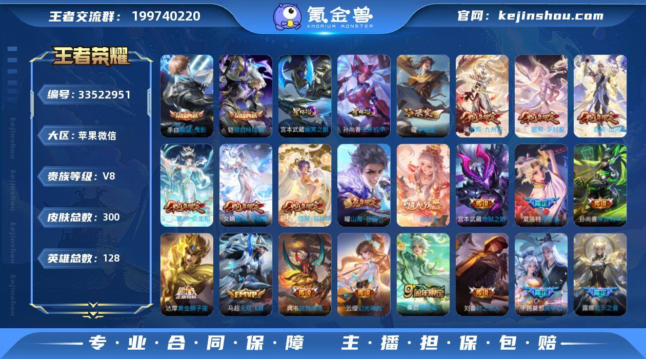 苹果WX-V8-最强王者段位-125英雄-293皮肤-2典藏皮肤-23传说-68史诗 【荣耀典藏】:李白鸣剑曳影,铠银白咏叹调 【传说皮肤】:西施续相思,司空震愿照山河定,女娲愿照千秋盛,妲己愿照众生和,澜愿照九州拓,蔡文姬愿照福禄聚,虞姬愿照岁时盈,云缨幻光神枪,桑启鸣野蒿,典韦战鼓燎原,夏洛特浮生妄,干将莫邪画中仙,花木兰燃星之曲,曜山海苍雷引,马超无双飞将,露娜启示之音,王昭君乞巧织情,曜