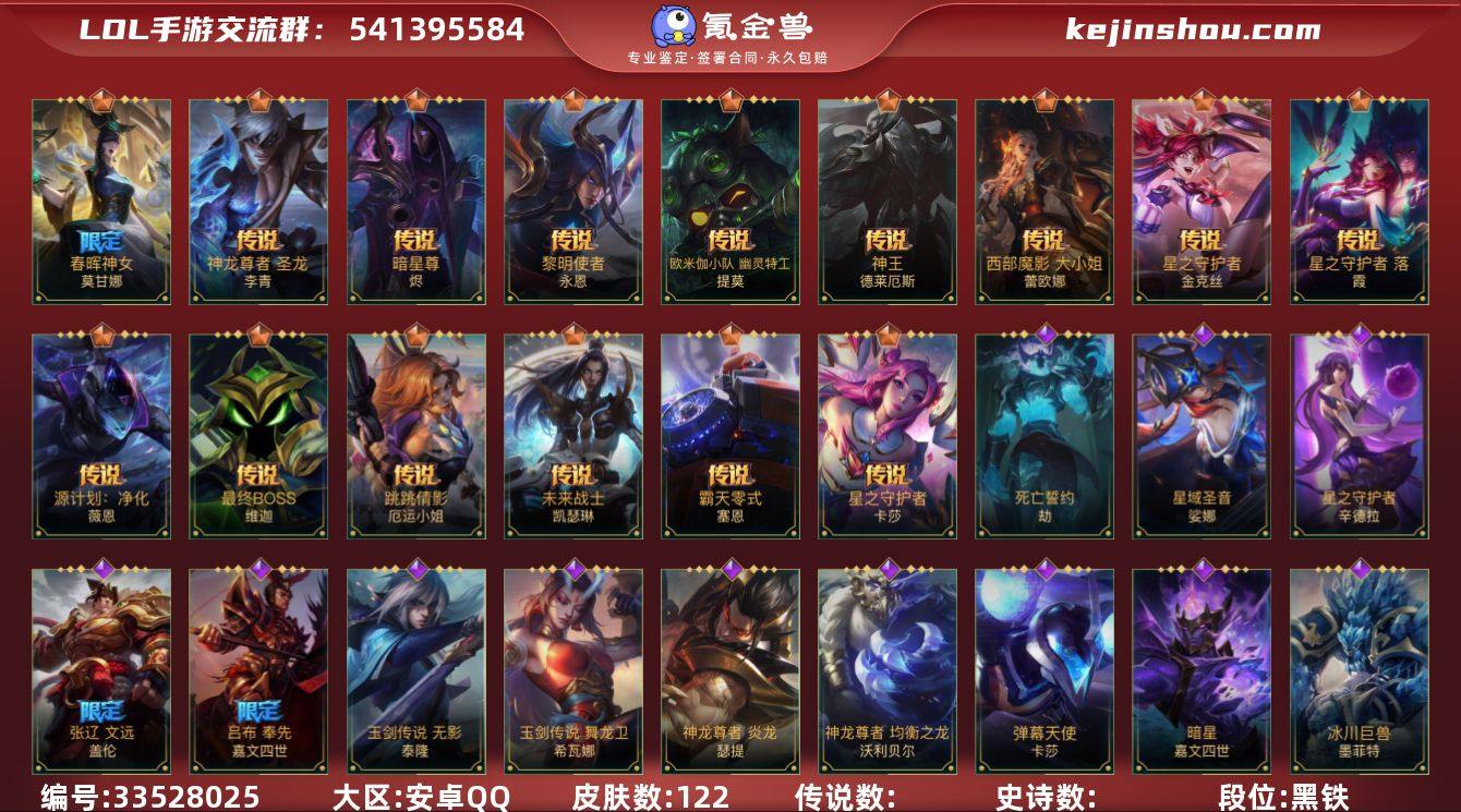 【LSQH36】104英雄/122皮肤/流光翡翠/桃映暖春 灼灼芳菲 拉克丝/夜星流火 金克丝/无声裁影 格温/张辽文远/吕布奉先/源计划:净化/黎明使者 赵信/星之守护者金克丝/暗星尊/星之守护者卡莎/春晖神女莫甘娜/斗魂无双 卢锡安/西部魔影大小姐蕾欧娜/欧米伽小队 幽灵特工/星之守护者 落/神龙尊者 圣龙 李青/跳跳倩影女枪/黎明使者永恩/神王诺手/未来战士女警/最终BOSS维迦/霸天零式塞恩/钢铁军团/张辽 文远/黎明使者卡尔玛/丧尸努努/黑夜使者蛮王/猎龙勇士赵信/清剿小队金克丝/蕊雪盈春:晏安 赫卡里姆/礼物选好了吗? 布隆/灰烬领主/星之守护者 辛德拉/弹幕天使/电玩女神卡莎/K/DA ALL OUT卡莎/清剿小队潘森/铁血女忍/灵魂莲华亚索/死亡誓约劫/源计划:雷/灵魂莲华小炮/星域圣音 娑娜/玉剑传说 舞龙卫/欧米伽小队 毒针狙击手 图奇/星域审判官/吕布 奉先/暗星皇子/神龙尊者 均衡之龙 沃利贝尔/地下拳王/奈落之炎/战地机甲 内瑟斯/魅惑女巫女枪/源计划:燃/神龙尊者 炎龙 瑟提/源计划:征伐/灵魂收割者/冰川巨兽石头人/暗星墨菲特/碧空灵跃 阿萝拉/银河魔装机神小鱼人/源代码索拉卡/霸天战鹰加里奥/抵抗军雷神 杰斯/战地机甲 厄加特/霸天战车螃蟹/鳄霸 雷克顿/欧米伽小队 天雷爆破手...
