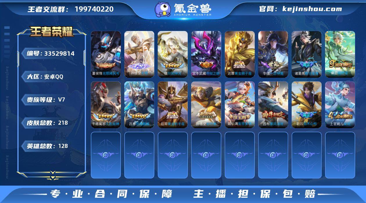 安卓Q 可二次 1典藏1无双14传说128英雄218皮肤 无限飓风号 无相 乘龙问璇玑 乘龙淬吴钩 逐花归海 神骥赴朔漠 愿照九州拓 鸣野蒿 鹤羽星尊 怒海麟威 炽阳神光 久胜战神 一念神魔 黄金狮子座 黄金射手座 地狱之眼 万灵启世 御风骁将 逐霄之志 百木心枪 孙行者 蓝屏警告 冰冠公主 原初追逐者 梁祝 器灵浮梦炉 星界特工 群星魔术团上官婉儿 燃音魔法 伽罗琥珀纪元 百解令 天秀音浪 天秀启明 水晶猎龙者 暗隐猎兽者 金属风暴 特工魅影 曙光守护者 特工战影 妄想食味 逐浪之夏 晚萤 白龙吟 千年之狐 紫霞仙子 圣诞恋歌 幽灵船长 乘风破浪 星夜王子 永昼 节奏热浪 天才门将 暗夜贵公子 偶像歌手 街头霸王 暗渊魔法 缤纷独角兽 鬼剑武藏 青焰无极 花好人间 苍威无极 群星魔术团程咬金 未来纪元赵云 女仆咖啡 敏锐之力 丁香结 皇家上将 探海日志 水果甜心 古海寻踪 蔬乡物语鲁班 天穹祈灯 驭风魔法 地狱燃心 江河有灵 荣光圣徽 纤云弄巧 电玩高手 鹰眼统帅 魔术师 王者荣耀账号