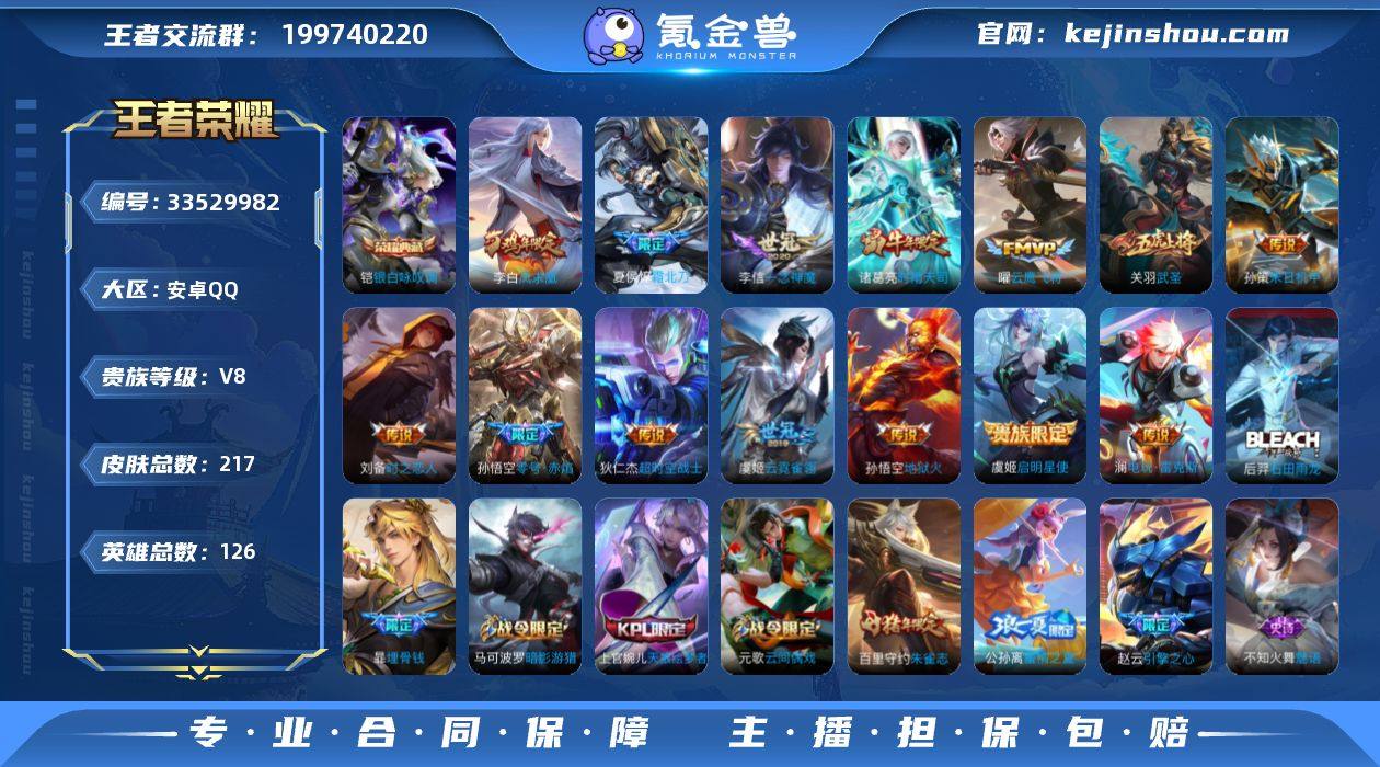 安卓Q-V8-永恒钻石III段位-126英雄-217皮肤-1典藏皮肤-1典藏英雄-14传说-53史诗 QW2612411 【荣耀典藏】:武则天英雄,铠银白咏叹调 【传说皮肤】:夏侯惇霜北刀,澜电玩雷克斯,孙策末日机甲,诸葛亮时雨天司,虞姬启明星使,孙悟空零号赤焰,关羽武圣,曜云鹰飞将,李信一念神魔,刘备时之恋人,虞姬云霓雀翎,李白凤求凰,孙悟空地狱火,狄仁杰超时空战士 【限定皮肤】:白起狰,夏侯惇霜北刀,暃埋骨钱,蒙犽顽岩魄,蔡文姬夏日便利店,大乔绒语心约,虞姬夏日便利店,姜子牙天穹之誓,狄仁杰阴阳师,虞姬凯尔特女王,赵云皇家上将,赵云引擎之心,墨子神迹守卫,嬴政白昼王子,孙尚香蔷薇恋人,鲁班七号狮舞东方,阿轲迷踪丽影,孙膑妖精王,扁鹊炼金王,芈月重明,吕布猎兽之王,周瑜赤莲之焰,元歌云间偶戏,夏侯惇朔风刀,曹操烛龙,典韦穷奇,马可波罗逐梦之星,马可波罗暗影游猎,狄仁杰魔术师,狄仁杰万华元夜,达摩星际陆战队,项羽海滩派对,老夫子醍醐杖,关羽武圣,貂蝉逐梦之音,程咬金演武夺筹,刘邦夺宝奇兵,韩信逐梦之影,亚瑟潮玩骑士王,孙悟空零号赤焰,牛魔御旌,李元芳银河之约,李元芳云中旅人,虞姬启明星使,钟馗神迹守卫,钟馗驱傩正仪,杨玉环...
