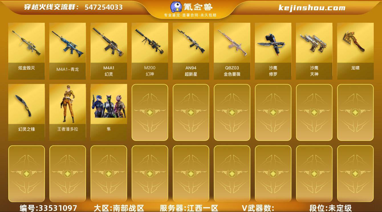 XD1099/南部/江西一区/可排位/【专家2】/【Lv.100 元帅】/41V/幻神/青龙/玄武/QBZ金色蔷薇/王者芳微/幻灵套/COP幻灵/*2/七套幻灵雷/【枪皮】火麒麟平天大圣/雷神脉冲核心/【四防角色】隼/王者潘多拉【角色】修道士【小人枪】朱雀蛇隐综/C.A.T/AK12夜玫瑰/【道具】/超级背包/各种戒指/各种光效/各种玩偶/永久AC/永久雷包/细节看图/【此账号未被封过十年】
