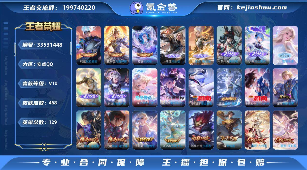 V10,3个典藏,7个无双,5个珍品传说,64个传说,150个皮肤共享,34个个性按键 468个皮肤,还有腾讯视频会员到2026年6月30日。