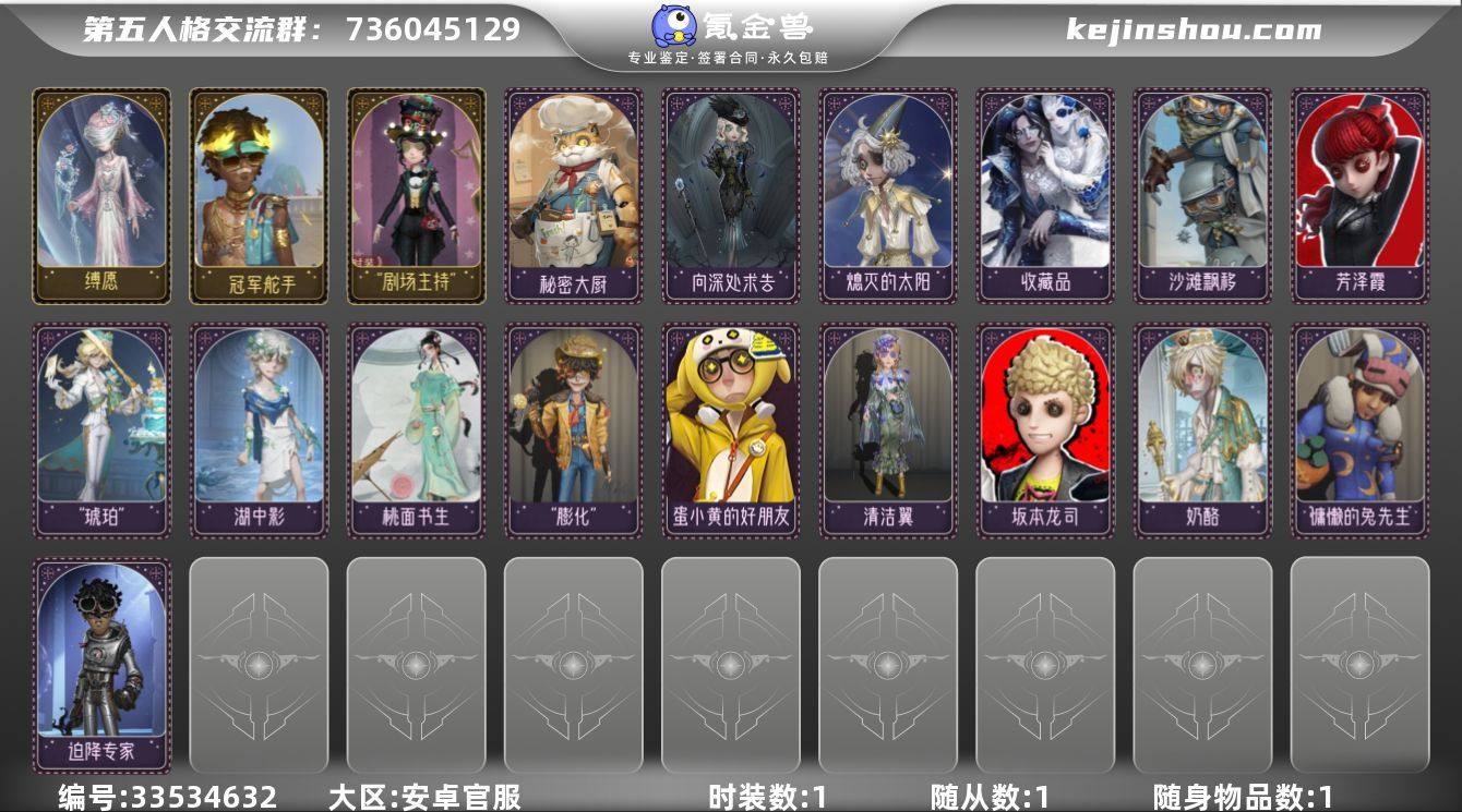 官服166时装4金31紫6随从23随身,剧场主持,缚愿,冠军舵手 ✅【XQR0126】 ✅区服:安卓邮箱号✅登入方式:邮箱号✅5.16可换绑 ✅金皮数量:4✅热门金:剧场主持,缚愿,冠军舵手,片刻闲暇 ✅紫皮数量:31✅热门紫:坂本龙司,芳泽霞,秘密大厨,收藏品,迫降专家,蛋小黄的好朋友,慵懒的兔先生,桃面书生,琥珀,奶酪,沙滩漂移,清洁翼,湖中影,熄灭的太阳,膨化,向深处求告