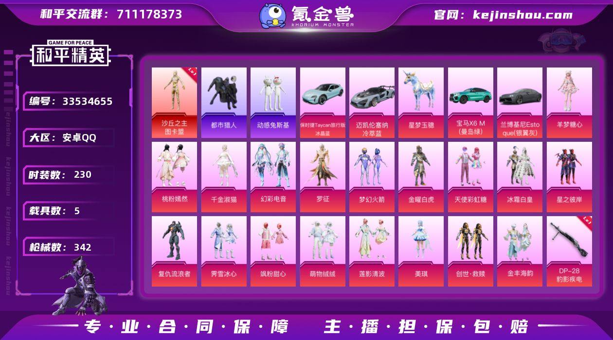 1红装 20粉装 15粉枪 5载具 2稀有装备 230套装 342枪皮 44热门 兰博基尼Estoque(银翼灰) 星梦玉骢 迈凯伦塞纳(冷萃蓝) 保时捷Taycan 旅行版(冰晶蓝) 宝马X6 M(曼岛绿) 都市猎人 奇异狩猎者 沙丘之主-图卡盟 稀有紫装-都市猎人 梦幻火箭 天使彩虹糖 冰霜白皇 星之彼岸 复仇流浪者 超能勇士 滨海厨神 吉莉礼服 快乐星愿 星梦畅游 幻羽潜行 虎虎生威吉莉 空投萌叽 莲影清波 炫蓝之夏 萌黄之夏 玩偶服-菲菲 黄色名流 牛气满满 猛禽 破晓战魂 鹤鸣 荣耀 隐空刺 萌趣颜团子 电音精灵 特种颜团子 飞行日记 飞狐塔尔斯 莱茵河畔 福星高照 神气柴柴 甜梦熊熊 幻彩翩翩 水晶王族 柠萌假日 王牌教练 青玉碎影 浴火魔神 飞驰魅影 龟仙人 音速流光 无暇誓言 涂山之恋 爆裂葡萄 空岛之星 贝斯之夜 贵族骑装 金戈铁马 都市漫游者 灵蜜圈圈 惊鸿侠骨 萌趣咩咩 竞技名士 清新柠檬 娇憨猪猪 锦衣飞扬 云霞荷露 蓝调潮人 元气发射 绝对偶像 竞技角斗士 酒红色名流 战地督导 灼焰舞者 龙的传人 玉兔迎春 快闪甜心 森林游猎者 春光漫游 湖蓝色名流 光之冒险 雨林探路者 绯格组合 街舞之王 龙腾端午 完美偶像 特殊使命 旭日情侣 缤纷果语 野性战心 暗金炫舞 沙漠毒蛇 格斗先锋 幻世战舞者 麻辣教官...