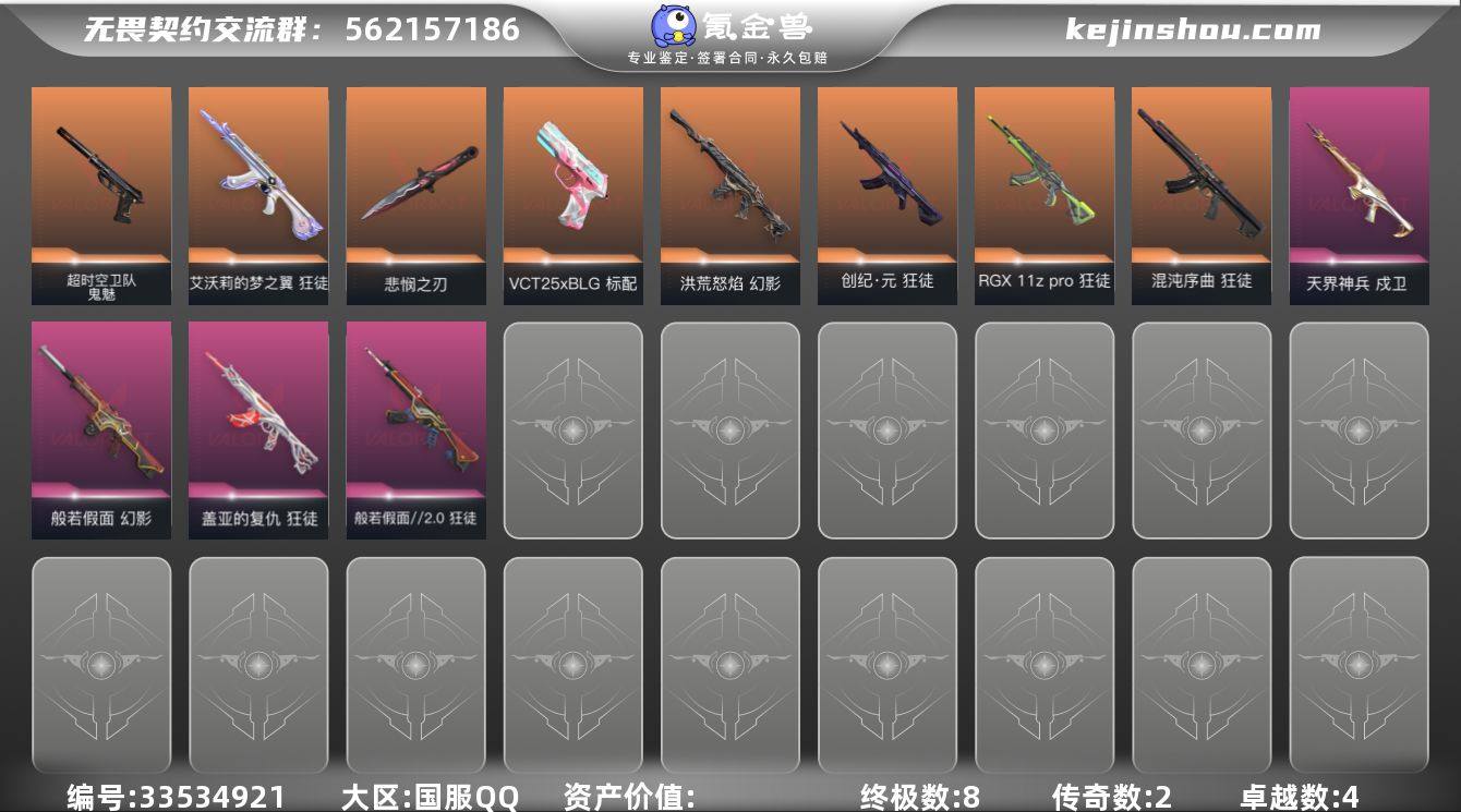 【PTWW3812】LV等级233/皮肤总价值26930/段位黄金/总皮肤数量23/刀皮数量3/枪皮数量20/套装数量1/具体详情请看图/无畏契约季前邀请赛套装/幻棱/炼狱/维斯/暮蝶/钛狐/壹决/铁臂/捷风/雷兹/幽影/不死鸟/贤者/猎枭/蝰蛇/零/芮娜/奇乐/尚勃勒/霓虹/斯凯/夜露/星礈/K/O/海神/盖可/黑梦/钢锁/无畏契约季前邀请赛 悲悯之刃/紫金爪刀/黑波之刃/狂徒-混沌序曲/狂徒-创·纪元/狂徒-RGX 11z pro/狂徒-艾沃莉的梦之翼/狂徒-般若假面//2.0/狂徒-盖亚的复仇/幻影-洪荒怒焰/幻影-般若假面/戍卫-天界神兵/骇灵-无限竞技/标配-超能偶像/标配-VCT25xBLG/正义-超限闪存/正义-纳米打击/鬼魅-超时空卫队/鬼魅-流星兵团/鬼魅-诡秘蛇影/鬼魅-星云暗涌/终章:激斗汉堡 卡面/进入射程 卡面/《双城之战》拥抱 卡面/精灵大战 卡面/欢迎来到底城 卡面/南瓜盛典 卡面/修车达人 卡面/热舞环节 卡面/正义的化身 卡面/终章:生意人麦宝 卡面/铁之华 卡面/时间到 卡面/最高舞台 卡面/音熊登场 卡面/声感陷阱设计图 卡面/Clutch 卡面/霓帧牛蛙 卡面/梦幻奶茶 卡面/终章:打造专属狂徒 卡面/趁热吃 卡面/艺无止境//全球冠军赛 卡面/源能反应 卡面/零点嗅探设计图 卡面/瓦娃脸雪糕 卡面 /无畏契约GO!第一卷:芮娜...