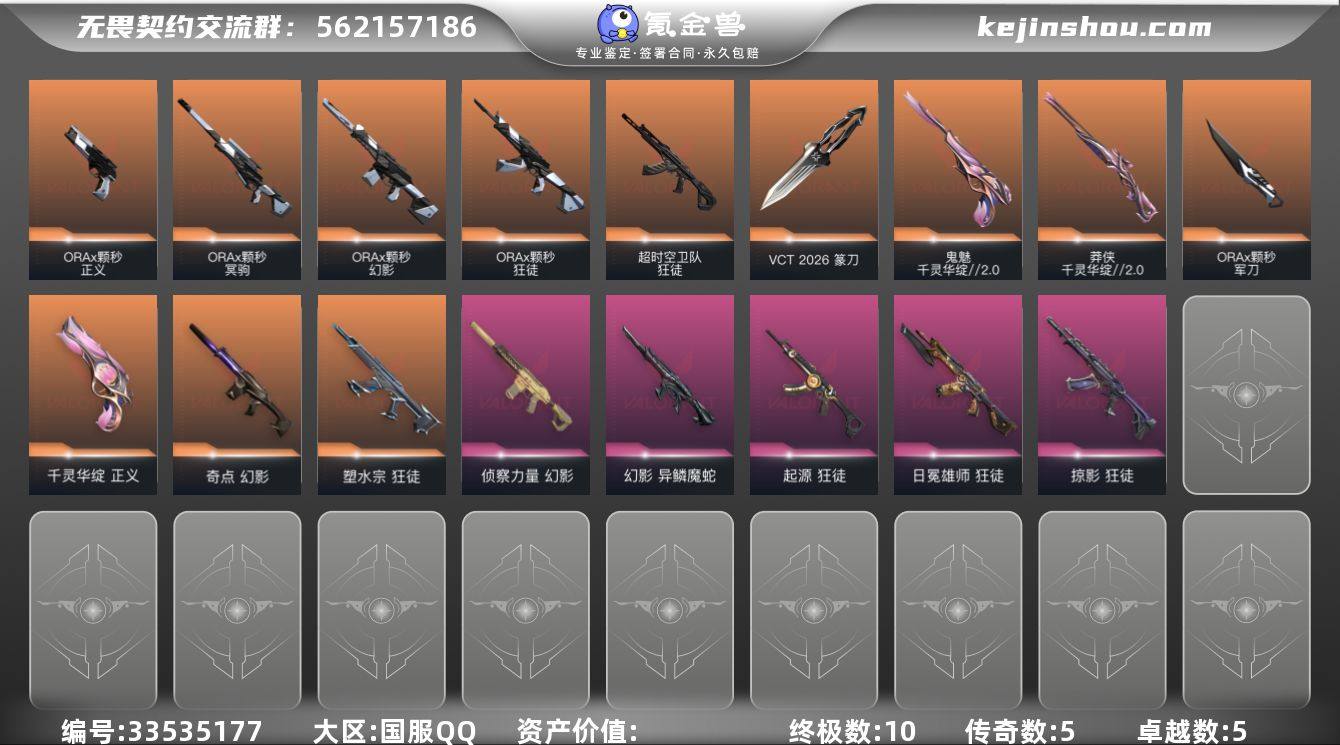 【PTWW3965】LV等级107/皮肤总价值32400/段位白银/总皮肤数量55/刀皮数量4/枪皮数量51/套装数量2/具体详情请看图/VCT 2026 赛季套装/ORAx颗秒/幻棱/炼狱/维斯/暮蝶/钛狐/壹决/铁臂/捷风/雷兹/幽影/不死鸟/贤者/猎枭/蝰蛇/零/芮娜/奇乐/尚勃勒/霓虹/斯凯/夜露/星礈/K/O/海神/盖可/黑梦/钢锁/近战武器-蒙太奇 战斧/近战武器-碎心裂刃/VCT 2026 篆刀/ORAx颗秒 军刀/狂徒-塑水宗/狂徒-ORAx颗秒/狂徒-超时空卫队/狂徒-掠影/狂徒-起源/狂徒-日冕雄师/幻影-奇点/幻影-ORAx颗秒/幻影-侦察力量/幻影-异鳞魔蛇/幻影-蒙太奇/戍卫-荆刺圣骸/冥驹-ORAx颗秒/莽侠-千灵华绽//2.0/战神-蒙太奇/骇灵-无限竞技/骇灵-蒙太奇/正义-千灵华绽/正义-ORAx颗秒/鬼魅-千灵华绽//2.0/狂怒-蒙太奇/热舞环节 卡面/正义的化身 卡面/Clutch 卡面/零点嗅探设计图 卡面/无畏契约GO!第一卷:芮娜 卡面/无畏契约GO!第一卷:零 卡面/化茧成蝶 卡面/无垠星环 卡面/无畏契约GO!第一卷:贤者 卡面/钢锁vs盖可 卡面/"Luie" 卡面/代号红色 卡面/新兵报到 卡面/V契约 卡面/无畏契约 卡面/买装还是存钱 喷漆/关门放狗 喷漆/酷熊冲浪 喷漆/放下武器 喷漆/胜利属于无畏契约 喷漆/GLHF 喷漆/无畏契约 喷漆/无畏契约GO!第...
