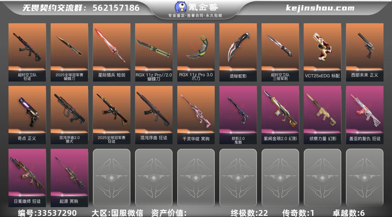 【958529】22橙皮 1金皮 6紫皮 79皮肤 29英雄 113卡面 1020已用源晶 黄金段位 可二次 可修改实名 【套装】2025全球冠军赛 【近战武器皮肤】鬼丸国纲,RGX 11z Pro//2.0 蝴蝶刀,夜刃诡镰,琉璃锻梦剑,2025全球冠军赛 蝴蝶刀,星际猎兵 短剑,超时空卫队 三棱军刺,诡秘蛇影,碎心裂刃,天御刀,紫金爪刀,威龙之刃,爪刀-RGX 11z Pro 3.0,定海神珍 【佩枪皮肤】正义-西部未来,鬼魅-掠影2.0,蒙太奇 狂怒,标配-VCT25xEDG,正义-奇点 【步枪皮肤】獠犬-混沌序曲2.0,2025全球冠军赛 狂徒,狂徒-超时空卫队,狂徒-混沌序曲,狂徒-盖亚的复仇,狂徒-日冕雄师,幻影-侦察力量,幻影-紫阙金琅2.0 【狙击枪皮肤】冥驹-起源,冥驹-千灵华绽 【挂饰】2025全球冠军赛挂饰,V25第六幕:神话 挂饰,V26第一幕纪念币 挂饰,H2-Oh!挂饰,灵魂迸发挂饰,无畏契约GO!第一卷零挂饰,达摩娃娃挂饰,德制跑鞋挂饰,破风者挂饰,龙门挂饰,欢乐花瓣挂饰,聚宝蛋挂饰,学员战术熊挂饰,精打细算挂饰,骑士之盾挂饰,瑞思拜挂饰,无畏契约GO!第一卷贤者挂饰,无人之境挂饰,无畏契约GO!第一卷捷风挂饰,无畏契约GO!第一卷奇乐挂饰,VCTxEDG挂饰,蓄势待滚挂饰,双城之战魄罗挂饰