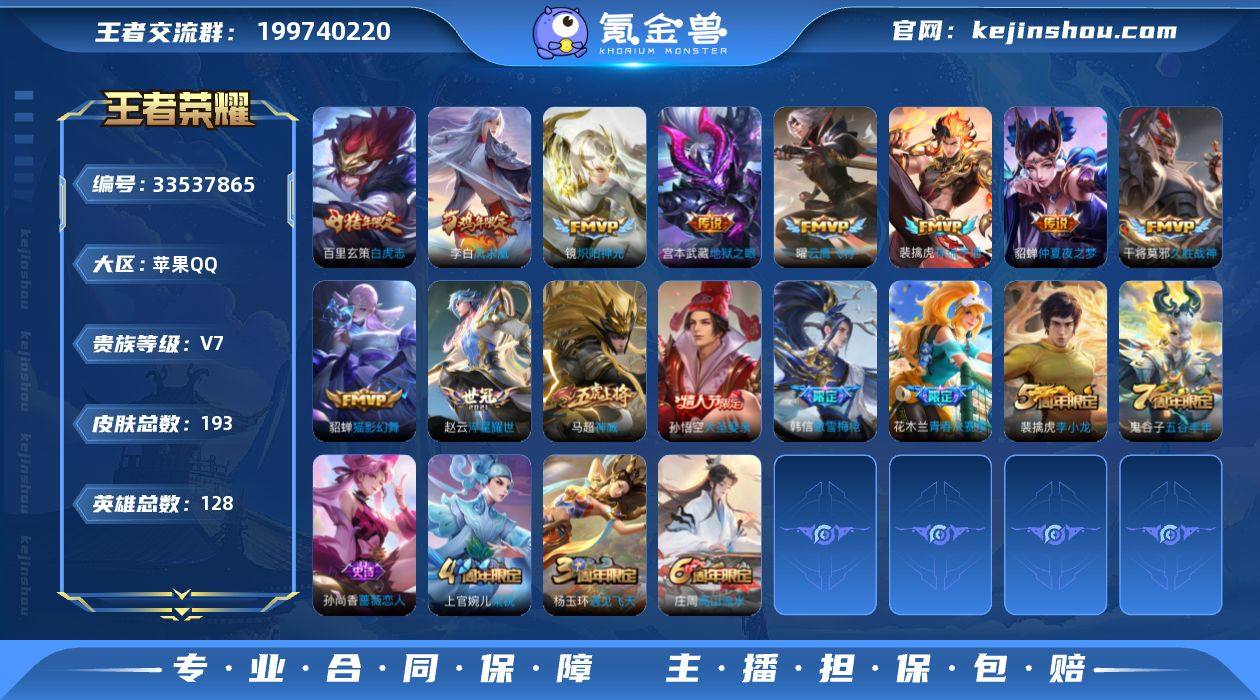 苹果Q 可二次 11传说128英雄193皮肤 凤求凰 神骥逐星野 祥瑞亨通 白虎志 淬星耀世 炽阳神光 云鹰飞将 猫影幻舞 久胜战神 仲夏夜之梦 地狱之眼 神威 百晓客 白虎志 逐霄之志 默契交锋女 大圣娶亲 傲雪梅枪 青春决赛季 蓝屏警告 朔望之晖 星空之诺 银河之约 梁祝 狂想玩偶喵 云间偶戏 暗夜猫娘 无限星赏官 原初探秘者 李小龙 水晶猎龙者 金属风暴 特工魅影 特工战影 蔷薇恋人 黄金分割率 逐浪之夏 修罗 魅语 千年之狐 紫霞仙子 圣诞恋歌 幽灵船长 乘风破浪 圣诞狂欢 星夜王子 节奏热浪 时之恋人女 街头霸王 德古拉伯爵 赤莲之焰 单词大作战 花好人间 妖精王 凯尔特女王 狰 饕餮 烛龙 重明 穷奇 御狮 御霄 御旌 御銮 朔风刀 混沌棋 疑决卦 醍醐杖 万华元夜 演武夺筹 驱傩正仪 未来纪元赵云 如懿 千军破阵 拳王 沙漠行僧 女仆咖啡 金庭之子 霸王丸 敏锐之力 云中旅人 丁香结 海盐诗旅 科学大爆炸 皇家上将 魅力维加斯 水果甜心 天穹祈灯 高山流水 迷踪丽影 无心 纤云弄巧 火炮绅士 五谷丰年 繁星吟游 遇见飞天 驯魔猎人 鹰眼统帅 魔术师 王者荣耀账号