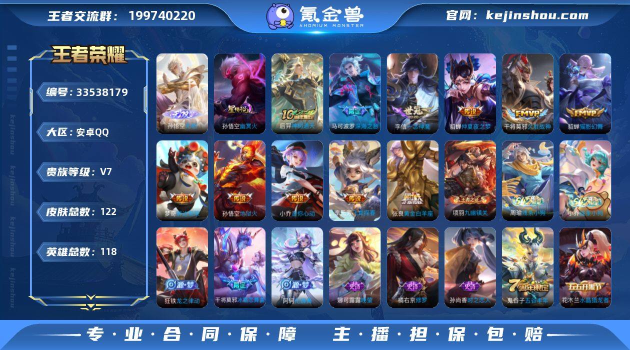 【FTWZ238】【差28804点券升贵族8!发育路21段!中路14段!打野11段!对抗路10段!个性按键5个!紫星币1698个!幸运夺宝145!】安卓Q-V7-最强王者段位-118英雄-122皮肤-1无双-1珍品传说-12传说-33史诗【无双皮肤】:孙悟空无相【珍品传说】:伽罗沧流箭【传说皮肤】:貂蝉神骥聚万邦,后羿神树通天,马可波罗深海之息,小乔音你心动,李元芳飞鸢探春,李信一念神魔,貂蝉猫影幻舞,张良黄金白羊座,干将莫邪久胜战神,梦奇胖达荣荣,貂蝉仲夏夜之梦,孙悟空地狱火【限定皮肤】:狄仁杰阴阳师,赵云皇家上将,嬴政优雅恋人,夏侯惇朔风刀,马可波罗深海之息,狄仁杰魔术师,达摩沙漠行僧,项羽海滩派对,老夫子醍醐杖,程咬金演武夺筹,钟馗驱傩正仪,干将莫邪冰霜恋舞曲,鬼谷子原初探秘者,鬼谷子五谷丰年,苏烈千军破阵,弈星混沌棋,明世隐疑决卦,沈梦溪龙舞盛年【赛季限定】:夏侯惇朔风刀,弈星混沌棋,明世隐疑决卦,老夫子醍醐杖,鬼谷子原初探秘者,程咬金演武夺筹,钟馗驱傩正仪,苏烈千军破阵,达摩沙漠行僧,东皇太一噬灭天穹,太乙真人谧流熔炉,钟馗虚灵犬护,亚瑟荣光之誓,项羽九幽镇关【战令限定】:孙膑茶境仙,马超访茗客,周瑜线条小狗,小乔线条小狗【史...