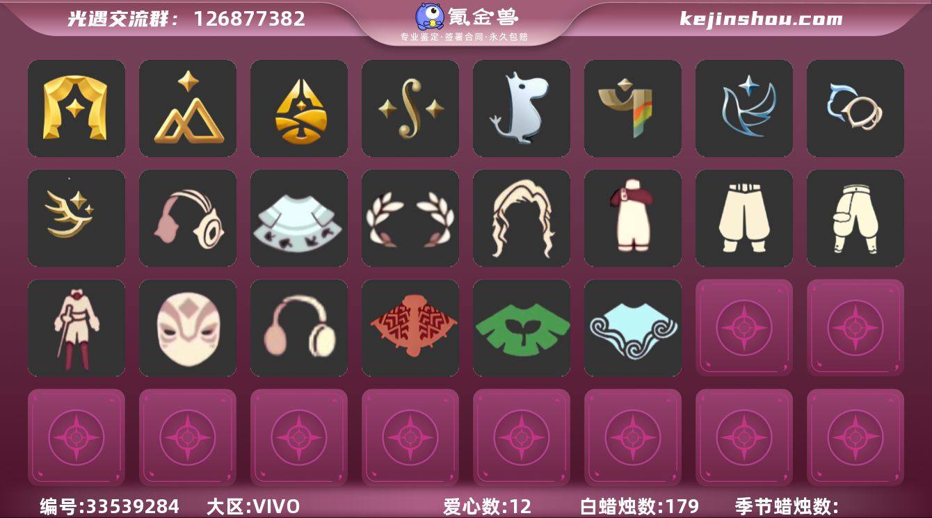 vivo渠道12季猛0白枭巫师蝙蝠武士裤 常驻:晨岛,云野,雨林,霞谷,暮土,禁阁 季节:表演季,欧若拉,拾光季,归巢季,九色鹿,二重奏季,姆明季,彩染季,青鸟季,双星季,迁徙季,织光季 礼包:兔子拖鞋,暖冬绒绒礼包,粽子发饰,星月头冠,神鹿祝福礼包,金鳞耳饰,彩虹耳机,日光耳环,紫框眼镜,圣诞鹿角,大蝴蝶结,姆明饰品套装,冥龙套装礼包,活力海牛礼包,南瓜头,巫师帽,宝骏丹心马尾,雪人头饰,贝壳发饰,雪花发夹,兔子发饰,蝴蝶与花发饰,小海牛配饰,大橘大利,小狗周年头饰,锦标赛桂冠,绿绒绒卷耳发饰,蓝色守护帽,缀黄画笔发箍,四叶草头饰,小黄鸭发饰,云音伴游耳机,创始人斗篷,小王子斗篷,福娃礼包,盘龙围巾斗篷,遥鲲披肩斗篷,蝙蝠斗,蛛网斗篷,瑞雪斗篷,暖冬围巾斗篷,绊爱斗,粽叶斗篷,青衫落拓礼包,献瑞折扇礼包,必胜客联动披萨,冥龙南瓜,自然之声礼,皮皮猫套装,向日葵耳饰 热门复刻:绿芽,海洋斗,击剑裤,武士裤,正太头,虚荣,猫耳发型,背带裤,搓澡巾,花环长发,红耳机,箬笠,平顶帽,雨伞,高音钢琴,白金斗篷,黑金斗篷,红金斗篷,黄鼠狼面具,疯帽匠发型,女巫发型,樱花发型,红吉他,星星面具,半框眼镜,蓝...