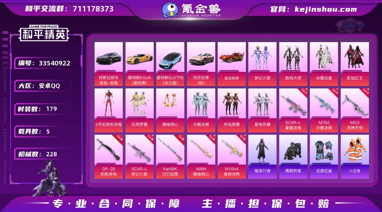 【949972】XS264339无二次安卓 手Q-10粉装-8特效枪-5载具-5粉色飞行器-81955热力值-14王牌印记-179套装-228枪皮 【热门品类】:粉装-梦幻火箭,套装-小丑鱼,角色-军刀雅典娜,套装-暗夜行者,套装-龟仙人 【粉色套装】:粉装-数码大师,粉装-梦幻火箭,粉装-冰霜白皇,粉装-炙焰红王,角色-2号机款机体服,粉装-庄周梦蝶,粉装-橘柚倾心,粉装-冷魅冰骑,粉装-赤焰黑爵,粉装-紫电风暴 【粉色枪皮等级】:M16A4-垂柳戏鸭(二级),SCAR-L-梦幻火箭(五级),SCAR-L-童趣迷兔(七级),M762-冷魅冰骑(七级),Kar98K-巳巳如意(五级),AWM-橘柚倾心(五级),DP-28-豹影疾电(五级),MG3-洛神天依(七级) 【粉色载具】:特斯拉Model 3(冷光银),路特斯EVIJA(星际黄),路特斯ELETRE(冰川蓝),玛莎拉蒂Ghibli(粉),焰龙咆哮 【粉色枪皮】:M16A4-垂柳戏鸭,SCAR-L-梦幻火箭,SCAR-L-童趣迷兔,M762-冷魅冰骑,Kar98K-巳巳如意,AWM-橘柚倾心,DP-28-豹影疾电,MG3-洛神天依 【粉色飞行器】:炫彩糖果飞行器,暗翼战神飞行器,庄周梦蝶飞行器,月下星之子飞行器,极意拳锋飞行器 【粉色降落伞】:未来战士降落伞,甜心宝贝降落伞,梦幻火箭降落伞,PEL轰鸣竞梦者降落伞,童趣迷兔降落...