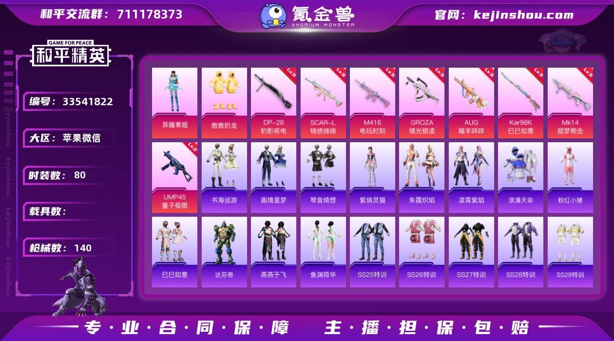 【952567】苹果 微信-2粉装-13特效枪-0载具-0粉色飞行器-39029热力值-8王牌印记-80套装-140枪皮 【热门品类】:套装-浪漫天命,套装-粉红小猪 【粉色套装】:粉装-傲傲奶龙,角色-异瞳寒姬 【粉色枪皮等级】:SCAR-L-锦绣绵绵(五级),M416-电玩时刻(五级),GROZA-镜光银凌(五级),AUG-暖羊咩咩(五级),ACE32-萌骑漫游(四级),UMP45-量子极限(二级),UMP45-萌骑冒险(五级),AKS-74U-森灵之息(五级),Kar98K-巳巳如意(五级),Mk14-甜梦熊击(五级),Mk14-福马献瑞(五级),AA12-G-萌骑幻想(三级),DP-28-豹影疾电(五级) 【粉色枪皮】:SCAR-L-锦绣绵绵,M416-电玩时刻,GROZA-镜光银凌,AUG-暖羊咩咩,ACE32-萌骑漫游,UMP45-量子极限,UMP45-萌骑冒险,AKS-74U-森灵之息,Kar98K-巳巳如意,Mk14-甜梦熊击,Mk14-福马献瑞,AA12-G-萌骑幻想,DP-28-豹影疾电 【粉色降落伞】:星之彼岸降落伞,恐龙拽拽降落伞,电糖天使降落伞,千金淑猫降落伞,喜羊羊与灰太狼降落伞,炫彩糖果降落伞,罪夜之冕降落伞 【稀有套装】:套装-巳巳如意,套装-雪国风尚,套装-马上来财,套装-迅捷龙虾,角色-达芬奇,套装-燕燕于飞,套装-鱼渊荷华,套装-朱霞炽焰,套装-凌霄紫焰,角色-紫俏灵猫,套装-...