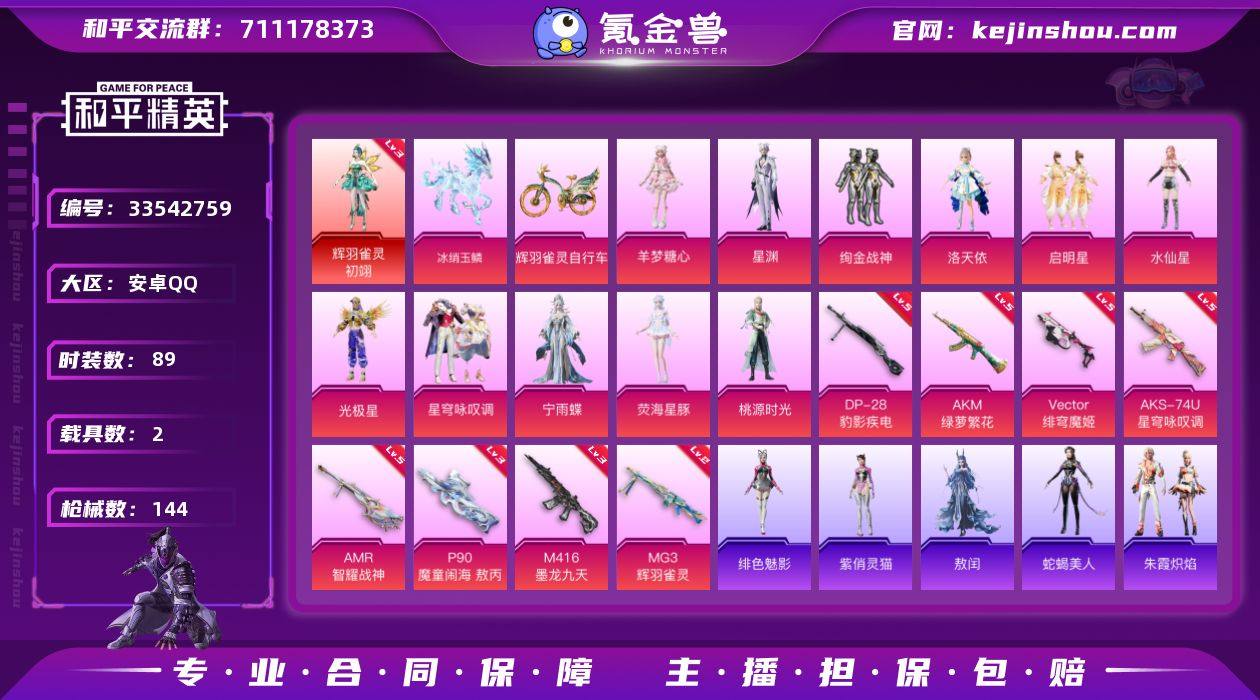 【954894】(1红套11粉套8粉枪2载具)初翊3级/绚金战神/洛天依/启明星/水仙星/光极星/星穹咏叹调/宁雨蝶/荧海星豚/桃源时光/星渊/羊梦糖心/AKM绿萝繁花五级/M416墨龙九天三级/Vector绯穹魔姬五级/AKS74U星穹咏叹调五级/P90魔童闹海 敖丙三级/AMR智耀战神五级/DP28豹影疾电五级/MG3辉羽雀灵二级/僚机冰龙团团/冰绡玉鳞/辉羽雀灵自行车/没战神框/HP7157-3粉色飞行器-51549热力值-8王牌印记-89套装-144枪皮 【红色神装等级】:辉羽雀灵-初翊(三级) 【红色角色神装】:辉羽雀灵-初翊 【热门品类】:套装-潮萌小黄鸭 【粉色套装】:粉装-绚金战神,角色-洛天依,粉装-启明星,角色-水仙星,角色-光极星,粉装-星穹咏叹调,角色-宁雨蝶,角色-荧海星豚,角色-桃源时光,角色-星渊,角色-羊梦糖心 【粉色枪皮等级】:AKM-绿萝繁花(五级),M416-墨龙九天(三级),Vector-绯穹魔姬(五级),AKS-74U-星穹咏叹调(五级),P90-魔童闹海 敖丙(三级),AMR-智耀战神(五级),DP-28-豹影疾电(五级),MG3-辉羽雀灵(二级) 【粉色载具】:僚机-冰龙团团,冰绡玉鳞,辉羽雀灵自行车 【粉色枪皮】:AKM-绿萝繁花,M416-墨龙九天,Vector-绯穹魔姬,AKS-74U-星穹咏叹调,P90-魔童闹海 敖丙,AMR-智耀战神...
