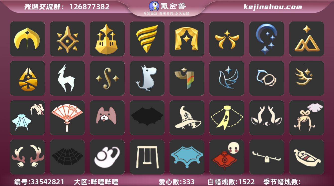 账号类型: 手机账号 季节已毕业: 圣岛季,预言季,梦想季,潜海季,表演季,欧若拉季,夜行季,拾光季,归巢季,九色鹿季,二重奏季,姆明季,彩染季,青鸟季,双星季,迁徙季 完成地图: 晨岛,云野,雨林,霞谷,暮土,禁阁 珍稀物品: 鳐鲲斗篷,阿努比斯(狗头),白枭,透明蝶翼斗,彩虹围巾 礼包: 蝙蝠套,巫师,围巾,九色鹿角,绊爱,鹿角,蜘蛛斗,兔子鞋,秋千,瑞雪,福娃,跷跷板,小船,橘子,贝壳,兔子,枯角,雪花,星月头饰,新年裤,蝴蝶结,暗彩装扮,新年耳钉,创始人,献瑞折扇礼包,小狗周年发饰,青衫落拓礼包 裤子: 武士裤,背带裤,搓澡巾,妮妮裙子,蓝绿裤,飞天裤,青鸟尊贵蓬头裤子 面具: 阿努比斯,九色鹿面具,凤凰面具,贴花面具,呼吸面具,夜行毕业面具,黄眉企鹅面具,辉光羚羊面具 面饰: 红耳机,黑框眼镜,青鸟毕业面饰 发型: 归巢毕业发型,若笠,虚荣,单侧绑发,留辫蘑菇头,飞天盘发 头饰: 行军锅头盔,羽毛发饰,牛仔帽,蓝色音乐会,平顶帽 斗篷: 黄色蓑衣,海洋斗,蟑螂斗,绿芽,粉红绒毛斗篷,燕尾斗篷,彩染围巾斗篷,青鸟毕业斗篷 配饰: 雨伞,高音钢琴,姆明抱枕,小红伞,相机,二重奏挂画,圆鼓,蓝色手碟 亮点: 【优质装备】:预言季,阿努比斯(狗头),表演季,白枭(帝企鹅发),武士裤,圣岛季,梦想季,潜海季,鳐鲲斗篷,透明...
