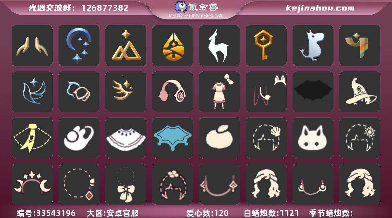账号类型: 手机账号 季节已毕业: 夜行季,拾光季,归巢季,九色鹿季,筑巢季,姆明季,彩染季,青鸟季,双星季,迁徙季,织光季 完成地图: 雨林,霞谷 珍稀物品: 彩虹围巾 礼包: 蝙蝠套,巫师,围巾,兔子鞋,白绒金,瑞雪,橘子,贝壳,兔子,雪花,星月头饰,彩虹耳钉,蝴蝶结,四叶草,新年耳钉,海蓝波浪发型,满月耳坠,姆明饰品套装,爱丽丝围裙套装礼包,云音伴游耳机 裤子: 武士裤,背带裤,搓澡巾,妮妮裙子,飞天裤,筑巢季·裤子 面具: 裂纹面具,夜行毕业面具,辉光羚羊面具 面饰: 红耳机,黑框眼镜,青鸟毕业面饰 项链: 围巾 发型: 归巢毕业发型,若笠,虚荣,飞天盘发,海蓝波浪发型 头饰: 牛仔帽,平顶帽 斗篷: 绿芽,粉红绒毛斗篷,彩染围巾斗篷,青鸟毕业斗篷 配饰: 雨伞,筑巢季·小手办,姆明抱枕,小红伞,相机 亮点: 【优质装备】:武士裤,归巢毕业发型(五塑彩羽发),筑巢季·小手办(光之子试衣),夜行季,妮妮裙子(妮妮长裙),牛仔帽(西部帽),姆明抱枕,小红伞(姆明红伞)(姆明大伞),相机(季卡相机),拾光季,彩虹围巾(五塑彩带斗),归巢季,九色鹿(九色鹿季),飞天裤(柔缎花边连)(九色鹿丝带裤),围巾(肩带),筑巢季,姆明季,筑巢季·裤子(设计师长袍),夜行毕业面具(棕熊面具),黑框眼镜(粗框眼镜),粉红绒毛斗篷(绒毛斗篷),辉光...