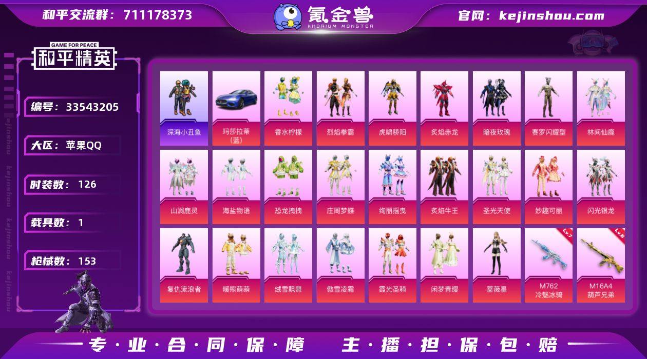 【955069】无敌战神号(23粉套6粉枪1载具)香水柠檬/烈焰拳霸/虎啸骄阳/炙焰赤龙/暗夜玫瑰/赛罗闪耀型/林间仙鹿/山涧鹿灵/海盐物语/恐龙拽拽/庄周梦蝶/绚丽摇曳/炙焰牛王/圣光天使/妙趣可丽/闪光银龙/复仇流浪者/暖熊萌萌/绒雪飘舞/傲雪凌霜/霞光圣骑/闲梦青缨/蔷薇星/M16A4葫芦兄弟六级/M4暖熊萌四级/GROZA焦糖拿铁四级/M762冷魅冰骑七级/SLR暗夜玫瑰五级/玛莎拉蒂蓝/HP7374-5粉色飞行器-64266热力值-5王牌印记-126套装-153枪皮 【热门品类】:套装-深海小丑鱼,套装-小丑鱼,角色-军刀雅典娜,套装-粉红小猪 【粉色套装】:粉装-香水柠檬,粉装-烈焰拳霸,粉装-虎啸骄阳,粉装-炙焰赤龙,粉装-暗夜玫瑰,角色-赛罗闪耀型,粉装-林间仙鹿,粉装-山涧鹿灵,粉装-海盐物语,粉装-恐龙拽拽,粉装-庄周梦蝶,粉装-绚丽摇曳,粉装-炙焰牛王,粉装-圣光天使,粉装-妙趣可丽,粉装-闪光银龙,角色-复仇流浪者,粉装-暖熊萌萌,粉装-绒雪飘舞,粉装-傲雪凌霜,粉装-霞光圣骑,粉装-闲梦青缨,角色-蔷薇星 【粉色枪皮等级】:M16A4-葫芦兄弟(六级),M416-暖熊萌萌(四级),GROZA-焦糖拿铁(四级),M762-冷魅冰骑(七级),Kar98K-巳巳如意(四级),SLR-暗夜玫瑰(五级) 【粉色载具】:玛莎拉...