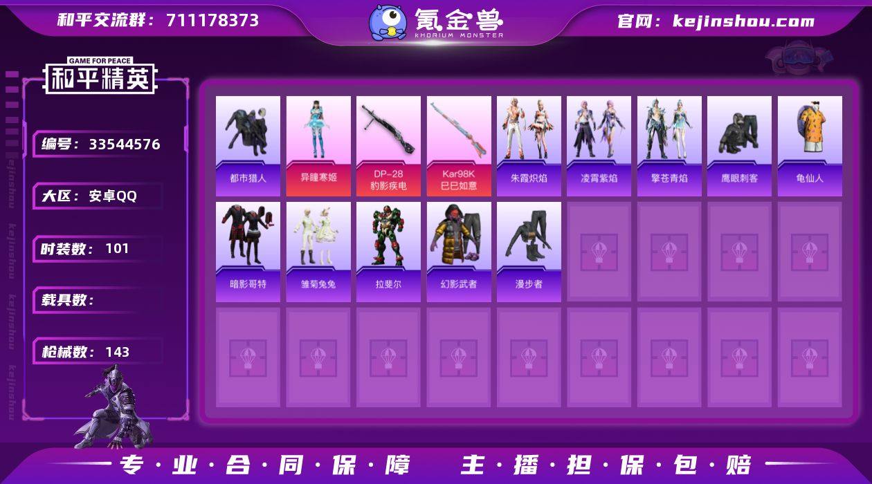 【957490】DYH18155+【2粉 5特效枪 暗影哥特 深海小丑鱼 都市猎人 拉斐尔】安卓手Q-2粉装-5特效枪-101套装-143枪皮-4王牌印记-坚韧铂金Ⅰ-37826热力值【2粉装】角色-千金淑猫,角色-异瞳寒姬【5特效枪】AKS-74U-森灵之息[5级],Kar98K-巳巳如意[5级],DP-28-豹影疾电[5级],Mk14-福马献瑞[5级],UMP45-萌骑冒险[5级]【3稀有】都市猎人,深海小丑鱼,暗影哥特【9飞行器】登顶巅峰飞行器,极意拳锋飞行器,狂鲨锋刃飞行器,空岛之星尾迹,炫彩糖果飞行器,鸡智如我飞行器,马上有福飞行器,光之冒险尾迹,云朵驼驼飞行器【234其它衣服和枪皮】猎鹰,朱霞炽焰,糖糖葫芦,王牌教练,狙击之神,龙腾端午,风迹短诗,雨过天青,香桃花海,街头风暴,SS35特训,龙魂突击队,凌霄紫焰,画境星梦,角色-蜜桃派对,鹤鸣,柠萌假日,黄色名流,恋语绒绒,SS34特训,SS37特训,擎苍青焰,福马献瑞,冰冻风暴,迅捷龙虾,青年教官,萌黄之夏,纯真浪花,龙的传人,白色伏地魔,光之冒险,萌鸡速递,角色-紫俏灵猫,漫步者,SS38特训,龟仙人,竞技名士,黄色伏地魔,旭日情侣,战术大师,红色运动,飞行日记,绮丽涂鸦,绯格组合,炫彩糖果,红釉青花,耀眼新星,阳光火鸡,海盐绵绵冰,SS36特训,雏菊兔兔,SS28特训,玉兔迎春,SS24特训,狂鲨锋刃,蓝彩潮人,热...