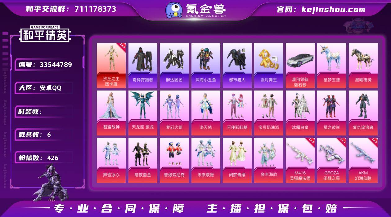 金鞋 6级哪吒scar 6级魔法师m4 3级星梦奇缘 5把计数枪】c30457-【无二次】【因赛季更新游戏段付以上号为准!】 安卓Q-1红装6稀有6载具16粉装28特效枪18热门265套装426枪皮 20印记 历史传奇王牌18星 【1红装】 沙丘之主-图卡盟 (4级) 【6稀有】 奇异狩猎者 AKM-缤纷海域 都市猎人 浪漫天命 派对舞王 派对舞王(金靴子) 【6载具】 暮色幽蹄 法拉利LaFerrari(赛车红) 霜月冰狼 星河领航(磐石银) 黑曜夜骑 星梦玉骢 【16粉装】 梦幻火箭 天龙座紫龙 宝贝奶油派 天使彩虹糖 洛天依 金丰海韵 鸢尾珑雾 未来歌姬 闲梦青缨 智耀战神 暗夜鎏金 冰霜白皇 霁雪冰心 星之彼岸 音爆索尼克 复仇流浪者 【28特效枪】 SCAR-L-锦绣绵绵 (5级) SCAR-L-魔童闹海哪吒 (6级) M416-墨龙九天 (1级) M416-灵猫魔法师 (6级) P90-沙丘之主 (3级) AKM-甜心宝贝 (7级) AKS-74U-信仰神谕 (4级) AKM-绿萝繁花 (5级) Kar98K-巳巳如意 (5级) AKM-幻海仙踪 (1级) DP-28-豹影疾电 (5级) AUG-星梦奇缘 (3级) 蜜獾-异瞳寒姬 (3级) Mk14-甜梦熊击 (5级) AMR-鸢尾晶梦 (4级) GROZA-圣辉之星 (5级) GROZA-镜光银凌 (5级) UMP45-相思残雪 (5级) M416-暖熊萌萌 (4级) AKM-梦之光华 (1级) 野牛-青空秋雨 (4级) M16A...