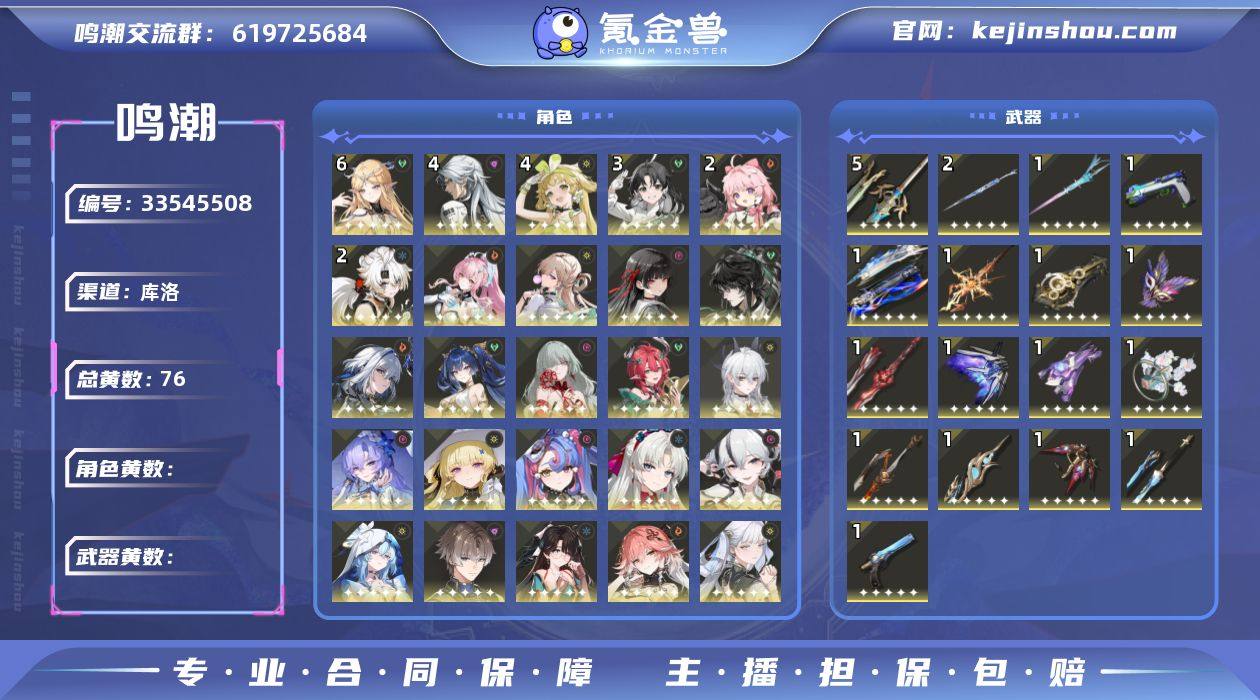 80级,69黄,26金角色,17金武器,4皮肤,300月相,7铸潮波纹,数据坞等级30,满命卡提希娅80级,其他详情看图