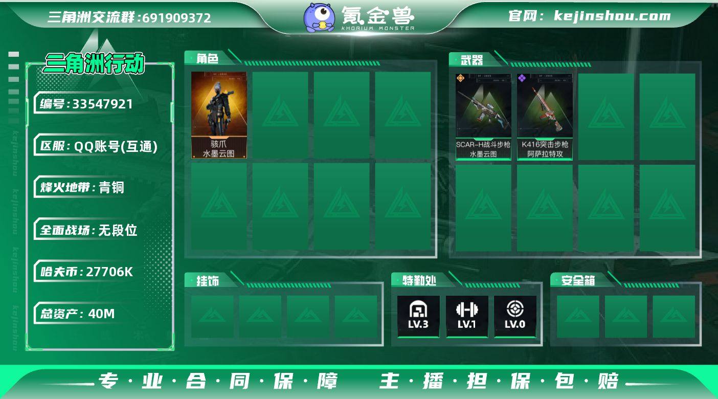 编号99387 不可二次 等级21 总资产40.3m 哈夫币27706k 1红皮 基础安全线 仓库lv3 训练中心lv1 靶场lv0 水墨云图