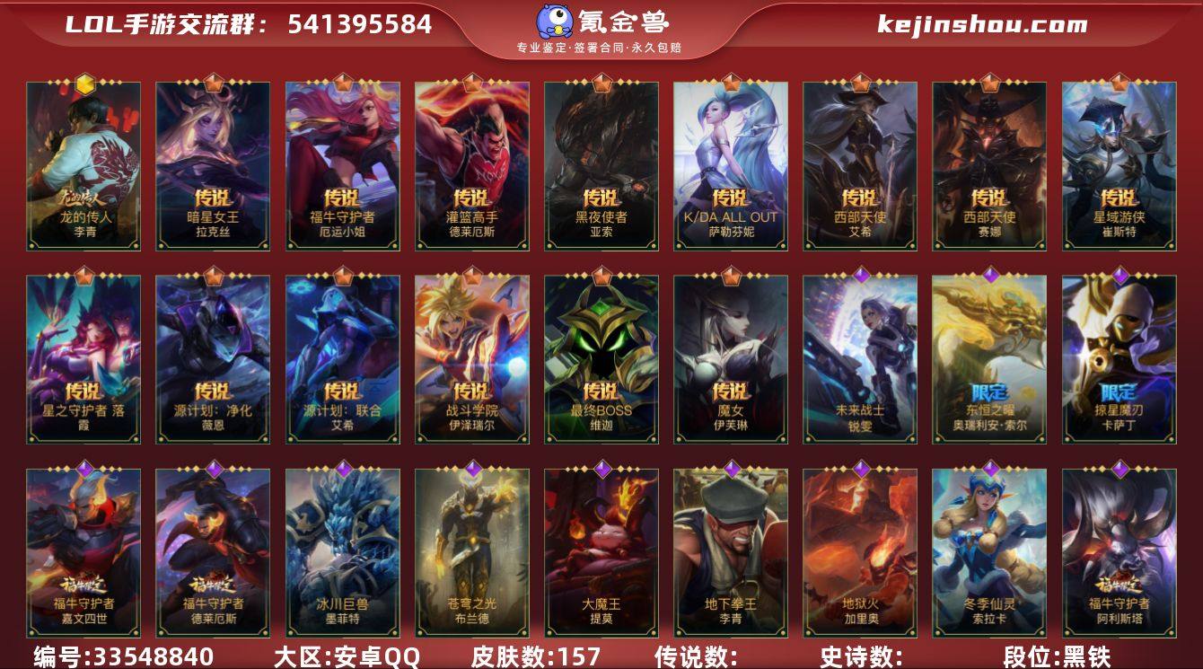 【LSC529】135英雄/157皮肤/超凡大师/龙的传人/掠星魔刃/暗星女王拉克丝/源计划:净化/北极星神 黛安娜/星域游侠卡牌/魔女伊芙琳/K/DA ALLOUT萨勒芬妮/黑夜使者亚索/星之守护者 落/福牛守护者女枪/灌篮高手/源计划:联合/西部天使寒冰/战斗学院ez/最终BOSS维迦/西部天使赛娜/腥红之月剑魔/黑夜使者凯隐/黎明使者卡尔玛/无限烈焰/星之守护者佐伊/清剿小队金克丝/蕊雪盈春:晏安 赫卡里姆/源计划:升华/灰烬领主/东恒之曜奥瑞利安索尔/腥红之月卡牌/猎龙勇士潘森/清剿小队潘森/源计划:暗影/福牛守护者剑姬/苹果机器人/福牛守护者安妮/北极星使者 安妮/K/DA ALL OUT阿狸/深海奇域 凯尔/泳池派对蕾欧娜/欧米伽小队 魔鬼伞兵/我,羽饰骑士 崔丝塔娜/大魔王/小蜜蜂提莫/星之守护者璐璐/炼狱魔女/源代码青钢影/福牛守护者皇子/地下拳王/柯基/奈落之炎/心之钢永恩/玉剑传说 无极/福牛守护者诺手/星之守护者风女/灵魂收割者/福牛守护者牛头/冰川巨兽石头人/虚空海灵/战场之王炸弹人/未来战士 锐雯/白色死神韦鲁斯/西部天使/源计划:雄心/死亡誓约卡特/战斗学院卡特/冬季仙灵/睡衣守护者EZ/地狱火加里奥/秘旅探索者加里奥/战斗学院阿克尚/抵抗军雷神 杰斯/西部魔影厄加特/掠星魔刃卡萨...