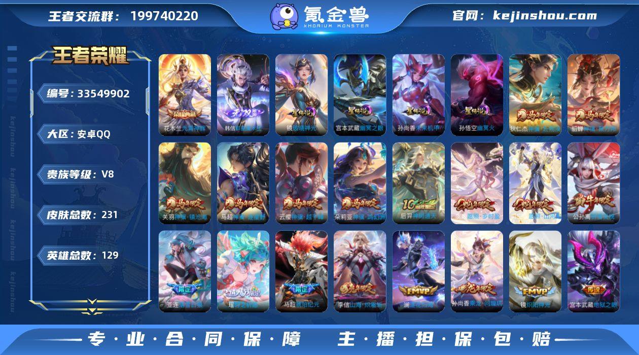 【店长主推精品号·Kuromi时间天幕·准万战金标百里守约·全皮马超·全皮夏洛特·群星魔术团·九霄神辉·破晓神光·全套马年限定·愿照山河定·愿照岁时盈·映山客·落雪白狼·乘龙问璇玑·琥珀纪元·浮生妄·山海炽霜斩·时之祈愿·祈雪灵祝·无二次包过】YXw24614-安卓Q-129英雄-231皮肤-13王者印记-241铭文-贵族积分6w【贵族8】【1典藏·1无双·4星传说·33传说·1天幕·32按键】【因赛季更新游戏段付以上号为准!】 【英雄全皮】:孙权全皮,马超全皮,敖隐全皮,夏洛特全皮,司空震全皮,空空儿全皮,影全皮 【荣耀典藏】:花木兰九霄神辉 【无双皮肤】:韩信群星魔术团 【星元皮肤】:镜破晓神光,孙尚香未来机甲,孙悟空幽冥火,宫本武藏幽冥之眼 【天幕】:Kuromi时间天幕 【传说皮肤】:云缨神骥越千峰,关羽神骥镇沧海,朵莉亚神骥鸣幻洲,狄仁杰神骥赴朔漠,貂蝉神骥聚万邦,马超神骥逐星野,后羿神树通天,司空震愿照山河定,虞姬愿照岁时盈,云缨幻光神枪,王昭君映山客,桑启鸣野蒿,亚连落雪白狼,孙尚香乘龙问璇玑,马超琥珀纪元,澜逐花归海,吕布遇见神鼓,夏洛特浮生妄,花木兰燃星之曲,李信山海炽霜斩,马超无双飞将,瑶时之祈愿,公孙离祈雪灵祝,镜炽阳神光,虞姬启明星使,曜云...