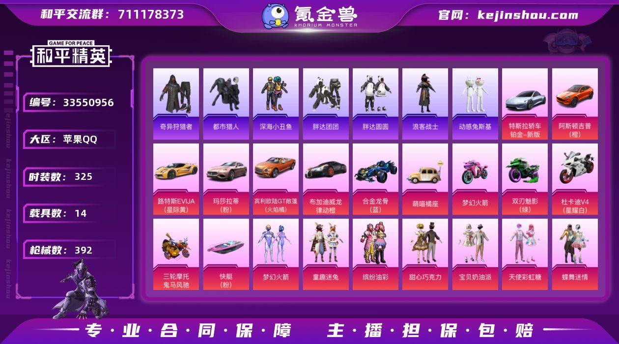 【49粉/23特效枪/14载具/新101/猪脸/浪漫天命/都市/小丑鱼/奇异狩猎者/胖达团团圆圆/暗夜之虎/暗影哥特】苹果 手Q-49粉装-23特效枪-14载具-17粉色飞行器-181744热力值-12王牌印记-325套装-392枪皮 【热门品类】:粉装-梦幻火箭,粉装-童趣迷兔,粉装-缤纷油彩,套装-浪漫天命,套装-都市猎人,套装-深海小丑鱼,套装-小丑鱼,套装-奇异狩猎者,套装-胖达团团,套装-胖达圆圆,套装-忍者信条,套装-浪客战士,套装-动感兔斯基人偶服,角色-2P战斗服款,套装-暗夜之虎,套装-龟仙人,套装-潮萌小黄鸭,套装-暗影哥特,套装-浪漫波比,套装-萌熊伴侣,熔岩游骑兵连帽夹克 【粉色套装】:粉装-甜心巧克力,粉装-宝贝奶油派,粉装-天使彩虹糖,粉装-蝶舞迷情,粉装-精灵迷巫,粉装-梦幻火箭,粉装-星之信仰,粉装-缤纷油彩,粉装-天禅智恒,粉装-狩月元帅,粉装-琉璃脉冲,粉装-向日葵,粉装-甜蜜誓约,粉装-心之恋语,粉装-极致幻想,粉装-星空之魅,粉装-花间之火,粉装-锦绣火鲤,粉装-黄蜂伯爵,粉装-鳞翅贤者,粉装-迷蝶贵族,粉装-星点战士,粉装-俏皮狐尾,粉装-草莓生巧,粉装-苍蓝魅影,粉装-翡翠骑士,粉装-绚金战神,粉装-冰霜白皇,粉装-童趣迷兔,粉装-炙焰红王,粉装...