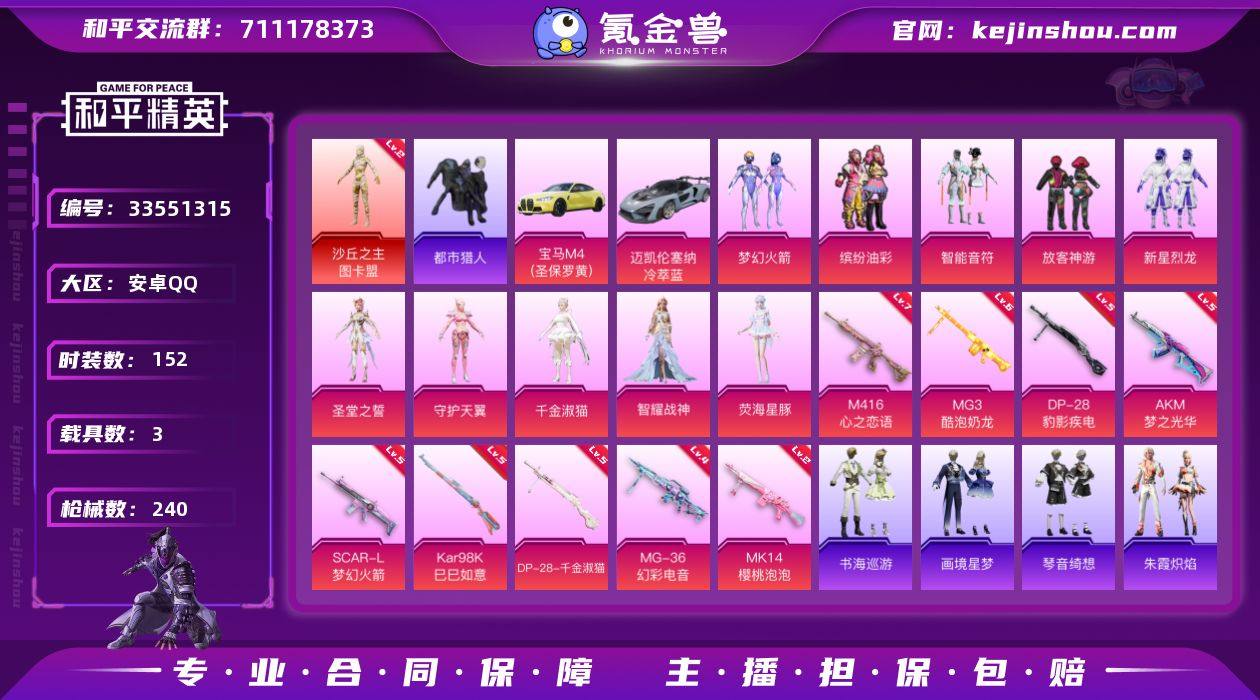 【冷漠男神号/二级图卡盟二级暮色魅影/新101/都市/猪脸/小丑鱼/金羽特工】安卓 手Q-2神装-10粉装-11特效枪-3载具-3粉色飞行器-79940热力值-12王牌印记-152套装-240枪皮【红色神装等级】:暮色玫影-艾丽娅(二级),沙丘之主-图卡盟(二级)【红色角色神装】:暮色玫影-艾丽娅,沙丘之主-图卡盟【热门品类】:粉装-梦幻火箭,粉装-缤纷油彩,套装-都市猎人,套装-小丑鱼,套装-金羽特工,套装-龟仙人,角色-Mark.06【粉色套装】:粉装-梦幻火箭,粉装-智能音符,粉装-缤纷油彩,粉装-放客神游,粉装-新星烈龙,角色-圣堂之誓,角色-守护天翼,角色-千金淑猫,角色-智耀战神,角色-荧海星豚【粉色枪皮等级】:AKM-梦之光华(五级),AKM-暮色玫影(三级),SCAR-L-梦幻火箭(五级),M416-心之恋语(七级),Kar98K-巳巳如意(五级),Mk14-樱桃泡泡(二级),Mk14-福马献瑞(一级),DP-28-千金淑猫(五级),DP-28-豹影疾电(五级),MG3-酷泡奶龙(六级),MG-36-幻彩电音(四级)【粉色载具】:宝马M4(圣保罗黄),迈凯伦塞纳(冷萃蓝),暮色幽蹄【粉色枪皮】:AKM-梦之光华,AKM-暮色玫影,SCAR-L-梦幻火箭,M416-心之恋语,Kar98K-巳巳如意,Mk14-樱桃泡泡,Mk14-福马献瑞,DP-28-千金淑猫,DP-28-...